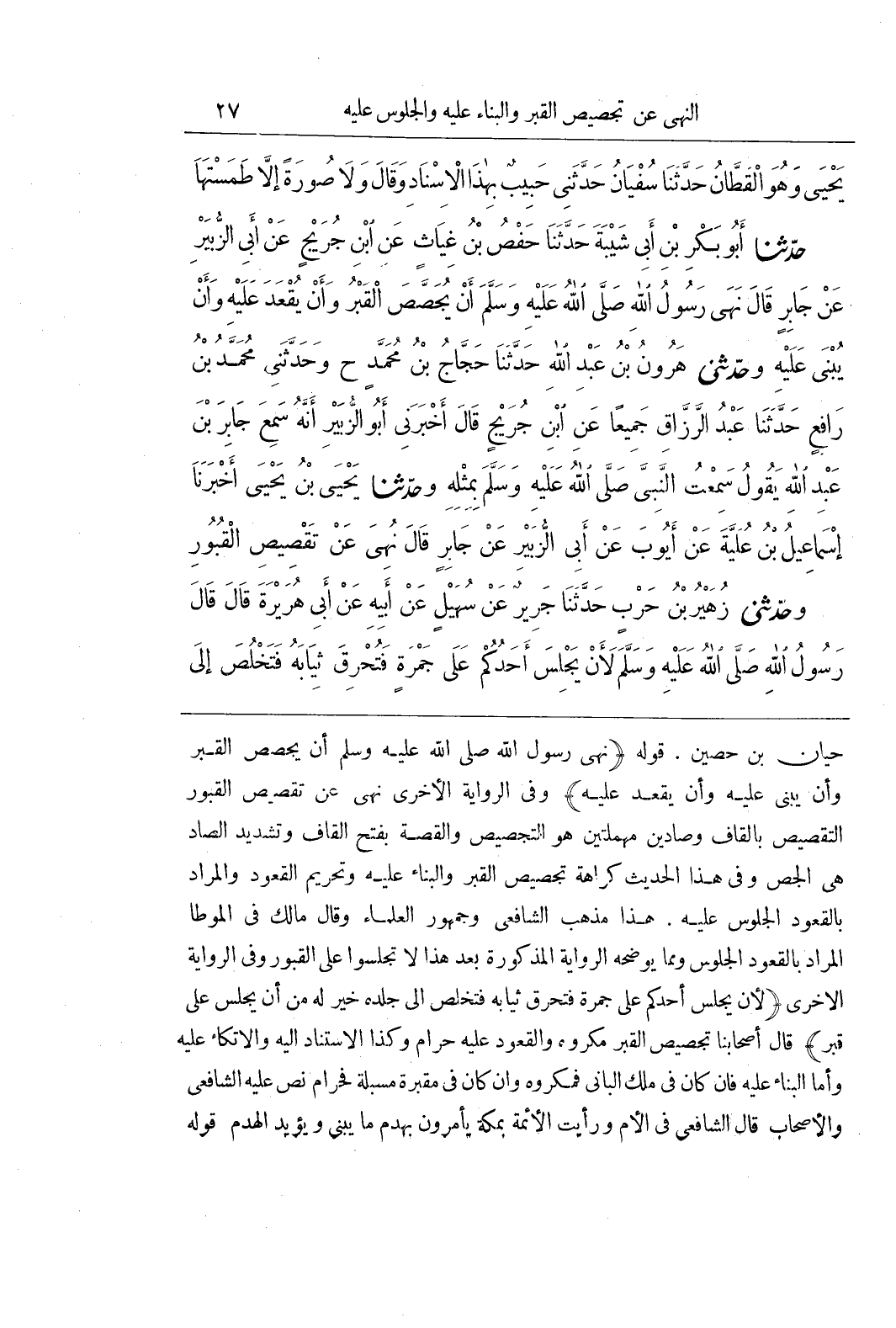 وَأَصْحَابُهُ قَامُوا لجِنَازَةٍ فَقَالُوا يَا رَسُولَ اللَّهِ إِنَّهَا يَهُودِيَّةٌ فَقَالَ إِنَّ الْمَوْتَ فَزَعٌ فَإِذَا رَأَيْتُمُ الْجِنَازَةَ فَقُومُوا وَفِي رِوَايَةٍ قَامَ النَّبِيُّ صَلَّى اللَّهُ عَلَيْهِ وَسَلَّمَ وَأَصْحَابُهُ لِجِنَازَةِ يَهُودِيٍّ حَتَّى تَوَارَتْ وَفِي رِوَايَةٍ قِيلَ إِنَّهُ يَهُودِيٌّ فَقَالَ أَلَيْسَتْ نَفْسًا وَفِي رِوَايَةِ عَلِيٍّ رَضِيَ اللَّهُ عَنْهُ قَامَ رَسُولُ اللَّهِ صَلَّى اللَّهُ عَلَيْهِ وَسَلَّمَ ثُمَّ قَعَدَ وَفِي رِوَايَةٍ رَأَيْنَا رَسُولَ اللَّهِ صَلَّى اللَّهُ عَلَيْهِ وَسَلَّمَ قَامَ فَقُمْنَا وَقَعَدَ فَقَعَدْنَا قَالَ الْقَاضِي اخْتَلَفَ النَّاسُ فِي هَذِهِ الْمَسْأَلَةِ فَقَالَ مَالِكٌ وَأَبُو حَنِيفَةَ والشافعى القيام منسوخ وقال أحمد واسحاق وبن حبيب وبن الماجشون المالكيان هو مخير قال الشافعي فِي قِيَامِ مَنْ يُشَيِّعُهَا عِنْدَ الْقَبْرِ فَقَالَ جَمَاعَةٌ مِنَ الصَّحَابَةِ وَالسَّلَفِ لَا يَقْعُدُ حَتَّى تُوضَعَ قَالُوا وَالنَّسْخُ إِنَّمَا هُوَ فِي قِيَامِ مَنْ مَرَّتْ بِهِ وَبِهَذَا قَالَ الْأَوْزَاعِيُّ وَأَحْمَدُ وَإِسْحَاقُ وَمُحَمَّدُ بْنُ الْحَسَنِ قَالَ وَاخْتَلَفُوا فِي القيام على القبر حتى تدفن فكره قَوْمٌ وَعَمِلَ بِهِ آخَرُونَ رُوِيَ ذَلِكَ عَنْ عثمان وعلى وبن عُمَرَ وَغَيْرِهِمْ رَضِيَ اللَّهُ عَنْهُمْ هَذَا كَلَامُ الْقَاضِي وَالْمَشْهُورُ فِي مَذْهَبِنَا أَنَّ الْقِيَامَ لَيْسَ مُسْتَحَبًّا وَقَالُوا هُوَ مَنْسُوخٌ بِحَدِيثِ عَلِيٍّ وَاخْتَارَ