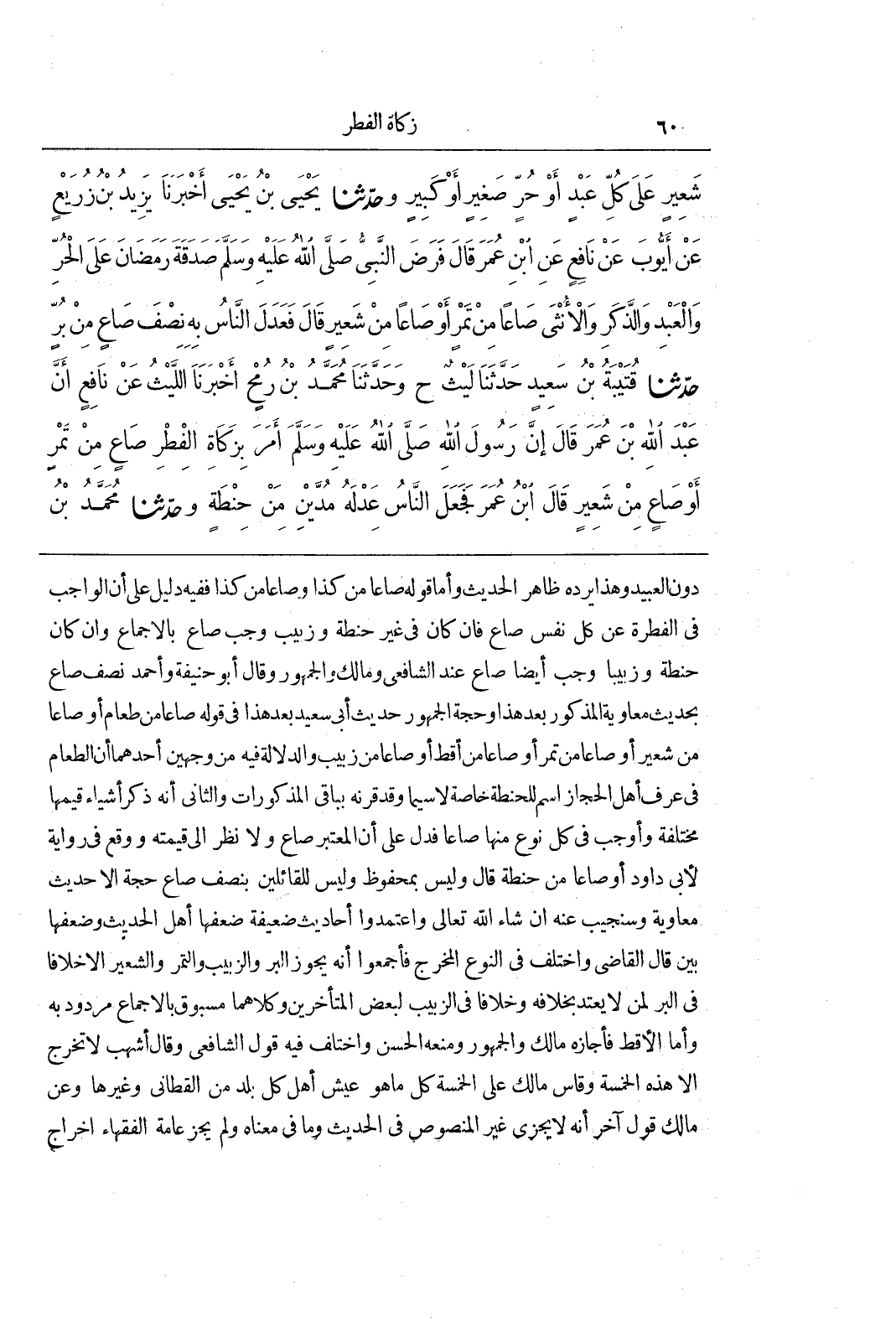دُونَ الْعَبِيدِ وَهَذَا يَرُدُّهُ ظَاهِرُ الْحَدِيثِ وَأَمَّا قَوْلُهُ صَاعًا مِنْ كَذَا وَصَاعًا مِنْ كَذَا فَفِيهِ دَلِيلٌ عَلَى أَنَّ الْوَاجِبَ فِي الْفِطْرَةِ عَنْ كُلِّ نَفْسٍ صَاعٌ فَإِنْ كَانَ فِي غَيْرِ حِنْطَةٍ وَزَبِيبٍ وَجَبَ صَاعٌ بِالْإِجْمَاعِ وَإِنْ كَانَ حِنْطَةً وَزَبِيبًا وَجَبَ أَيْضًا صَاعٌ عِنْدَ الشَّافِعِيِّ وَمَالِكٍ وَالْجُمْهُورِ وَقَالَ أَبُو حَنِيفَةَ وَأَحْمَدُ نِصْفُ صَاعٍ بِحَدِيثِ مُعَاوِيَةَ الْمَذْكُورِ بَعْدَ هَذَا وَحُجَّةُ الْجُمْهُورِ حَدِيثُ أَبِي سَعِيدٍ بَعْدَ هَذَا فِي قَوْلِهِ صَاعًا مِنْ طَعَامٍ أَوْ صَاعًا مِنْ شَعِيرٍ أَوْ صَاعًا مِنْ تَمْرٍ أَوْ صَاعًا مِنْ أَقِطٍ أَوْ صَاعًا مِنْ زَبِيبٍ وَالدَّلَالَةُ فِيهِ مِنْ وَجْهَيْنِ أَحَدُهُمَا أَنَّ الطَّعَامَ فِي عُرْفِ أَهْلِ الْحِجَازِ اسْمٌ لِلْحِنْطَةِ خَاصَّةً لَا سِيَّمَا وَقَدْ قَرَنَهُ بِبَاقِي الْمَذْكُورَاتِ وَالثَّانِي أَنَّهُ ذَكَرَ أَشْيَاءَ قِيَمُهَا مُخْتَلِفَةٌ وَأَوْجَبَ فِي كُلِّ نَوْعٍ مِنْهَا صَاعًا فَدَلَّ عَلَى أَنَّ الْمُعْتَبَرَ صَاعٌ وَلَا نَظَرَ إِلَى قِيمَتِهِ وَوَقَعَ في رواية لأبي داود أوصاعا مِنْ حِنْطَةٍ قَالَ وَلَيْسَ بِمَحْفُوظٍ وَلَيْسَ لِلْقَائِلَيْنِ بِنِصْفِ صَاعٍ حُجَّةٌ إِلَّا حَدِيثَ مُعَاوِيَةَ وَسَنُجِيبُ عَنْهُ إِنْ شَاءَ اللَّهُ تَعَالَى وَاعْتَمَدُوا أَحَادِيثَ ضَعِيفَةً ضَعَّفَهَا أَهْلُ الْحَدِيثِ وَضَعْفُهَا بَيِّنٌ قَالَ الْقَاضِي وَاخْتُلِفَ فِي النَّوْعِ الْمُخْرَجِ فَأَجْمَعُوا أَنَّهُ يَجُوزُ الْبُرُّ وَالزَّبِيبُ وَالتَّمْرُ وَالشَّعِيرُ إِلَّا خِلَافًا فِي الْبُرِّ لِمَنْ لَا يُعْتَدُّ بِخِلَافِهِ وَخِلَافًا فِي الزَّبِيبِ لِبَعْضِ الْمُتَأَخِّرِينَ وَكِلَاهُمَا مَسْبُوقٌ بِالْإِجْمَاعِ مَرْدُودٌ بِهِ وَأَمَّا الْأَقِطُ فَأَجَازَهُ مَالِكٌ وَالْجُمْهُورُ وَمَنَعَهُ الْحَسَنُ وَاخْتَلَفَ فِيهِ قَوْلُ الشَّافِعِيِّ وَقَالَ أَشْهَبُ لَا تُخْرَجُ إِلَّا هَذِهِ الْخَمْسَةُ وَقَاسَ مَالِكٌ عَلَى الْخَمْسَةِ كُلَّ مَا هُوَ عَيْشُ أَهْلِ كُلِّ بَلَدٍ مِنَ الْقَطَانِيِّ وَغَيْرِهَا وَعَنْ مَالِكٍ قَوْلٌ آخَرُ أَنَّهُ لَا يُجْزِي غَيْرُ الْمَنْصُوصِ فِي الْحَدِيثِ وَمَا فِي مَعْنَاهُ وَلَمْ يُجِزْ عَامَّةُ الْفُقَهَاءِ إِخْرَاجَ