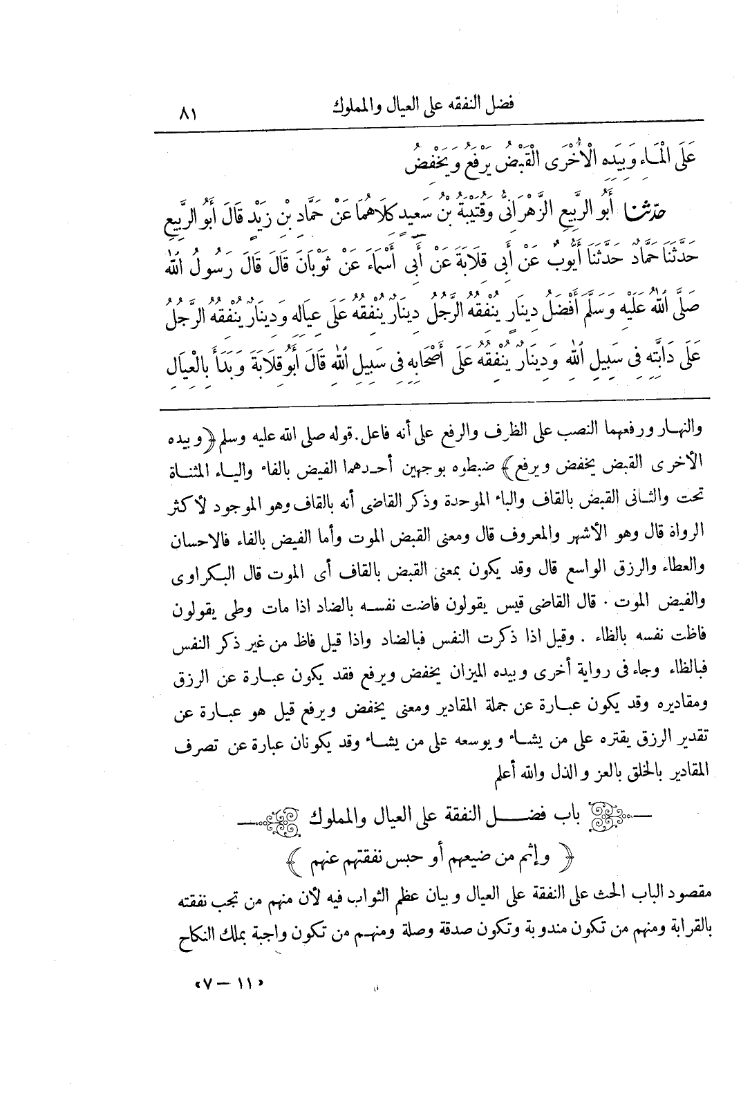 (باب فَضْلِ النَّفَقَةِ عَلَى الْعِيَالِ والمملوك)