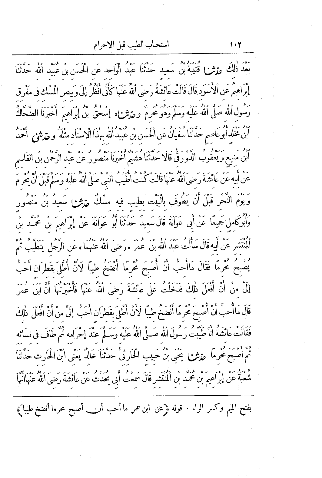 [1192] قوله (عن بن عُمَرَ مَا أُحِبُّ أَنْ أُصْبِحَ مُحْرِمًا أَنْضَخُ طيبا
