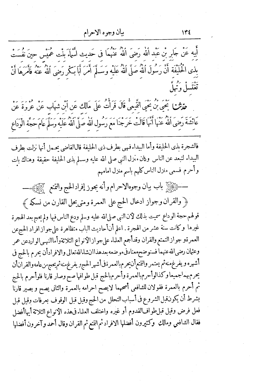(وَالْقِرَانِ وَجَوَازِ إِدْخَالِ الْحَجِّ عَلَى الْعُمْرَةِ ومتى يحل للقارن مِنْ نُسُكِهِ) قَوْلُهُمْ حَجَّةِ الْوَدَاعِ سُمِّيَتْ بِذَلِكَ لِأَنَّ النَّبِيَّ صَلَّى اللَّهُ عَلَيْهِ وَسَلَّمَ وَدَّعَ النَّاسَ فِيهَا وَلَمْ يَحُجَّ بَعْدَ الْهِجْرَةِ غَيْرَهَا وَكَانَتْ سَنَةَ عَشْرٍ مِنَ الْهِجْرَةِ اعْلَمْ أَنَّ أَحَادِيثَ الْبَابِ مُتَظَاهِرَةٌ عَلَى جَوَازِ إِفْرَادِ الْحَجِّ عَنِ الْعُمْرَةِ وَجَوَازِ التَّمَتُّعِ وَالْقِرَانِ وَقَدْ أَجْمَعَ الْعُلَمَاءُ عَلَى جَوَازِ الْأَنْوَاعِ الثَّلَاثَةِ وَأَمَّا النَّهْيُ الْوَارِدُ عَنْ عُمَرَ وَعُثْمَانَ رَضِيَ اللَّهُ عَنْهُمَا فَسَنُوَضِّحُ مَعْنَاهُ فِي مَوْضِعِهِ بَعْدَ هَذَا إِنْ شَاءَ اللَّهُ تَعَالَى وَالْإِفْرَادُ أَنْ يُحْرِمَ بِالْحَجِّ فِي أَشْهُرِهِ وَيَفْرُغَ مِنْهُ ثُمَّ يَعْتَمِرَ وَالتَّمَتُّعُ أَنْ يُحْرِمَ بِالْعُمْرَةِ فِي أَشْهُرِ الْحَجِّ وَيَفْرُغَ مِنْهُ ثُمَّ يَحُجَّ مِنْ عَامِهِ وَالْقِرَانُ أَنْ يُحْرِمَ بِهِمَا جَمِيعًا وَكَذَا لَوْ أَحْرَمَ بِالْعُمْرَةِ وَأَحْرَمَ بِالْحَجِّ قَبْلَ طَوَافِهَا صَحَّ وَصَارَ قَارِنًا فَلَوْ أَحْرَمَ بِالْحَجِّ ثُمَّ أَحْرَمَ بِالْعُمْرَةِ فَقَوْلَانِ لِلشَّافِعِيِّ أَصَحُّهُمَا لَا يَصِحُّ إِحْرَامُهُ بِالْعُمْرَةِ وَالثَّانِي يَصِحُّ وَيَصِيرُ قَارِنًا بِشَرْطِ أَنْ يَكُونَ قَبْلَ الشُّرُوعِ فِي أَسْبَابِ التَّحَلُّلِ مِنَ الْحَجِّ وَقِيلَ قَبْلَ الْوُقُوفِ بِعَرَفَاتٍ وَقِيلَ قَبْلَ فِعْلِ فَرْضٍ وَقِيلَ قَبْلَ طَوَافِ الْقُدُومِ أَوْ غَيْرِهِ وَاخْتَلَفَ الْعُلَمَاءُ فِي هَذِهِ الْأَنْوَاعِ الثَّلَاثَةِ أَيُّهَا أَفْضَلُ فَقَالَ الشَّافِعِيُّ وَمَالِكٌ وَكَثِيرُونَ أَفْضَلُهَا الْإِفْرَادُ ثُمَّ التَّمَتُّعُ ثُمَّ الْقِرَانُ وَقَالَ أَحْمَدُ وَآخَرُونَ أَفْضَلُهَا