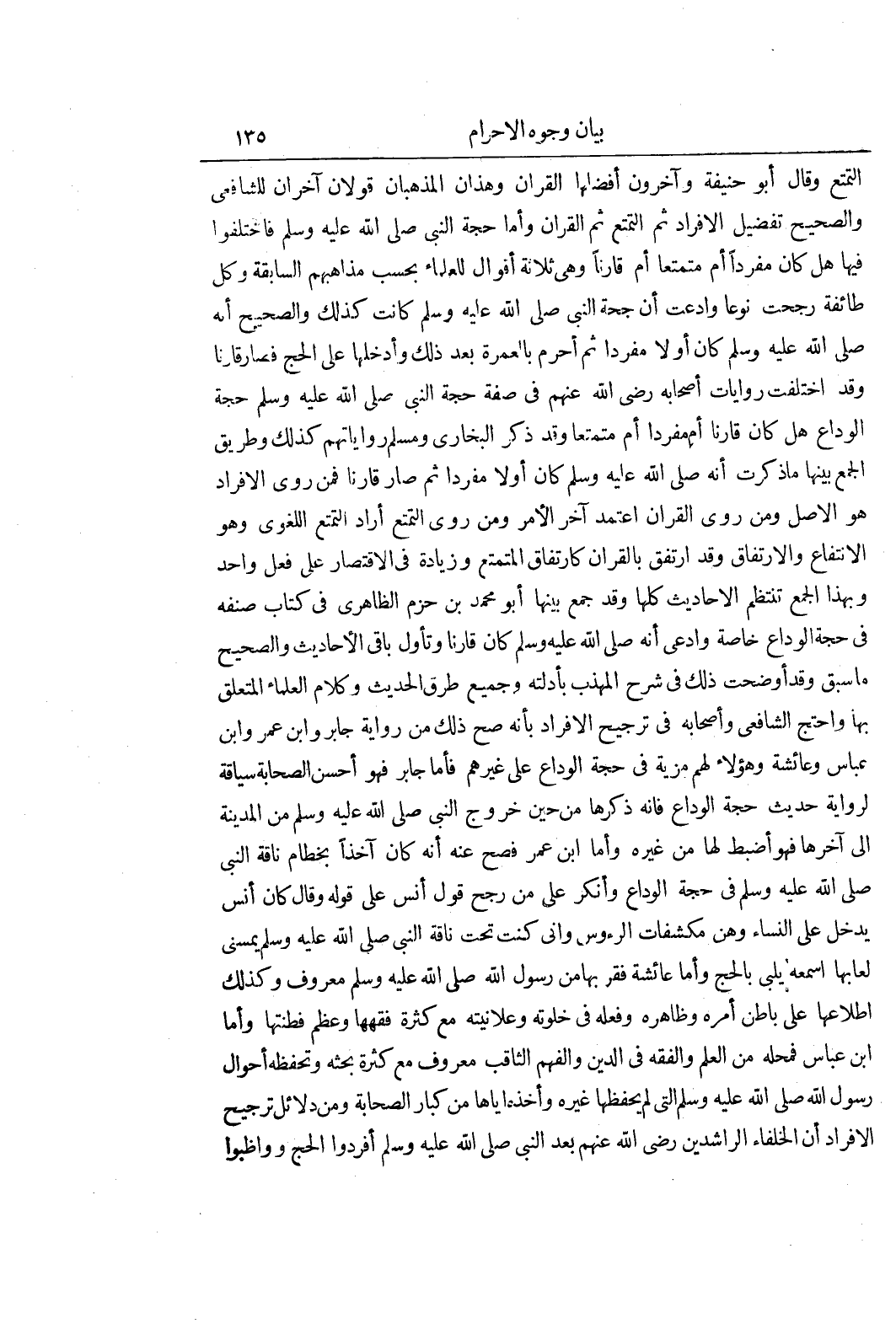 التَّمَتُّعُ وَقَالَ أَبُو حَنِيفَةَ وَآخَرُونَ أَفْضَلُهَا الْقِرَانُ وَهَذَانِ الْمَذْهَبَانِ قَوْلَانِ آخَرَانِ لِلشَّافِعِيِّ وَالصَّحِيحُ تَفْضِيلُ الْإِفْرَادِ ثُمَّ التَّمَتُّعِ ثُمَّ الْقِرَانِ وَأَمَّا حَجَّةُ النَّبِيِّ صَلَّى اللَّهُ عَلَيْهِ وَسَلَّمَ فَاخْتَلَفُوا فِيهَا هَلْ كَانَ مُفْرِدًا أَمْ مُتَمَتِّعًا أَمْ قَارِنًا وَهِيَ ثَلَاثَةُ أَقْوَالٍ لِلْعُلَمَاءِ بِحَسَبِ مَذَاهِبهِمُ السَّابِقَةِ وَكُلُّ طَائِفَةٌ رَجَّحَتْ نَوْعًا وَادَّعَتْ أَنَّ حَجَّةَ النَّبِيِّ صَلَّى اللَّهُ عَلَيْهِ وَسَلَّمَ كَانَتْ كَذَلِكَ وَالصَّحِيحُ أَنَّهُ صَلَّى اللَّهُ عَلَيْهِ وَسَلَّمَ كَانَ أَوَّلًا مُفْرِدًا ثُمَّ أَحْرَمَ بِالْعُمْرَةِ بَعْدَ ذَلِكَ وَأَدْخَلَهَا عَلَى الْحَجِّ فَصَارَ قَارِنًا وَقَدِ اخْتَلَفَتْ رِوَايَاتُ أَصْحَابِهِ رَضِيَ اللَّهُ عَنْهُمْ فِي صِفَةِ حَجَّةِ النَّبِيِّ صَلَّى اللَّهُ عَلَيْهِ وَسَلَّمَ حَجَّةِ الْوَدَاعِ هَلْ كَانَ قَارِنًا أَمْ مُفْرِدًا أَمْ مُتَمَتِّعًا وَقَدْ ذَكَرَ الْبُخَارِيُّ وَمُسْلِمٌ رِوَايَاتِهِمْ كَذَلِكَ وَطَرِيقُ الْجَمْعِ بَيْنَهَا مَا ذَكَرْتُ أَنَّهُ صَلَّى اللَّهُ عَلَيْهِ وَسَلَّمَ كَانَ أَوَّلًا مُفْرِدًا ثُمَّ صَارَ قَارِنًا فَمَنْ رَوَى الْإِفْرَادَ هُوَ الْأَصْلُ وَمَنْ رَوَى الْقِرَانَ اعْتَمَدَ آخِرَ الْأَمْرِ وَمَنْ رَوَى التَّمَتُّعَ أَرَادَ التَّمَتُّعَ اللُّغَوِيَّ وَهُوَ الِانْتِفَاعُ وَالِارْتِفَاقُ وَقَدِ ارْتَفَقَ بِالْقِرَانِ كَارْتِفَاقِ الْمُتَمَتِّعِ وَزِيَادَةٌ فِي الِاقْتِصَارِ عَلَى فِعْلٍ وَاحِدٍ وَبِهَذَا الْجَمْعِ تَنْتَظِمُ الْأَحَادِيثُ كُلُّهَا وَقَدْ جَمَعَ بَيْنَهَا أَبُو مُحَمَّدِ بْنُ حَزْمٍ الظَّاهِرِيُّ فِي كِتَابٍ صَنَّفَهُ فِي حَجَّةِ الْوَدَاعِ خَاصَّةً وَادَّعَى أَنَّهُ صَلَّى اللَّهُ عَلَيْهِ وَسَلَّمَ كَانَ قَارِنًا وَتَأَوَّلَ بَاقِي الْأَحَادِيثِ وَالصَّحِيحُ مَا سَبَقَ وَقَدْ أَوْضَحْتُ ذَلِكَ فِي شَرْحِ الْمُهَذَّبِ بِأَدِلَّتِهِ وَجَمِيعِ طُرُقِ الْحَدِيثِ وَكَلَامِ الْعُلَمَاءِ الْمُتَعَلَّقِ بِهَا وَاحْتَجَّ الشَّافِعِيُّ وَأَصْحَابُهُ فِي تَرْجِيحِ الْإِفْرَادِ بِأَنَّهُ صَحَّ ذَلِكَ مِنْ رواية جابر وبن عمر وبن عَبَّاسٍ وَعَائِشَةَ وَهَؤُلَاءِ لَهُمْ مَزِيَّةٌ فِي حَجَّةِ الْوَدَاعِ عَلَى غَيْرِهِمْ فَأَمَّا جَابِرٌ فَهُوَ أَحْسَنُ الصَّحَابَةِ سِيَاقَةً لِرِوَايَةِ حَدِيثِ حَجَّةِ الْوَدَاعِ فَإِنَّهُ ذَكَرَهَا مِنْ حِينِ خُرُوجَ النَّبِيِّ صَلَّى اللَّهُ عَلَيْهِ وَسَلَّمَ مِنْ الْمَدِينَةِ إِلَى آخِرِهَا فَهُوَ أضبط لها من غيره وأما بن عُمَرَ فَصَحَّ عَنْهُ أَنَّهُ كَانَ آخِذًا بِخِطَامِ نَاقَةِ النَّبِيِّ صَلَّى اللَّهُ عَلَيْهِ وَسَلَّمَ فِي حَجَّةِ الْوَدَاعِ وَأَنْكَرَ عَلَى مَنْ رَجَّحَ قَوْلَ أَنَسٍ عَلَى قَوْلِهِ وَقَالَ كَانَ أَنَسٌ يَدْخُلُ عَلَى النِّسَاءِ وَهُنَّ مُكْشِفَاتٌ الرُّءُوسَ وَإِنِّي كُنْتُ تَحْتَ نَاقَةِ النَّبِيِّ صَلَّى اللَّهُ عَلَيْهِ وَسَلَّمَ يَمَسُّنِي لُعَابُهَا أَسْمَعُهُ يُلَبِّي بِالْحَجِّ وَأَمَّا عَائِشَةُ فَقُرْبُهَا مِنْ رَسُولِ اللَّهِ صَلَّى اللَّهُ عَلَيْهِ وَسَلَّمَ مَعْرُوفٌ وَكَذَلِكَ اطِّلَاعُهَا عَلَى بَاطِنِ أَمْرِهِ وَظَاهِرِهِ وَفِعْلِهِ فِي خَلْوَتِهِ وَعَلَانِيَتِهِ مَعَ كَثْرَةِ فقهها وعظم فطنتها وأما بن عَبَّاسٍ فَمَحَلُّهُ مِنَ الْعِلْمِ وَالْفِقْهِ فِي الدِّينِ وَالْفَهْمِ الثَّاقِبِ مَعْرُوفٌ مَعَ كَثْرَةِ بَحْثِهِ وَتَحَفُّظِهِ أَحْوَالَ رَسُولِ اللَّهِ صَلَّى اللَّهُ عَلَيْهِ وَسَلَّمَ الَّتِي لَمْ يَحْفَظْهَا غَيْرُهُ وَأَخْذُهُ إِيَّاهَا مِنْ كِبَارِ الصَّح