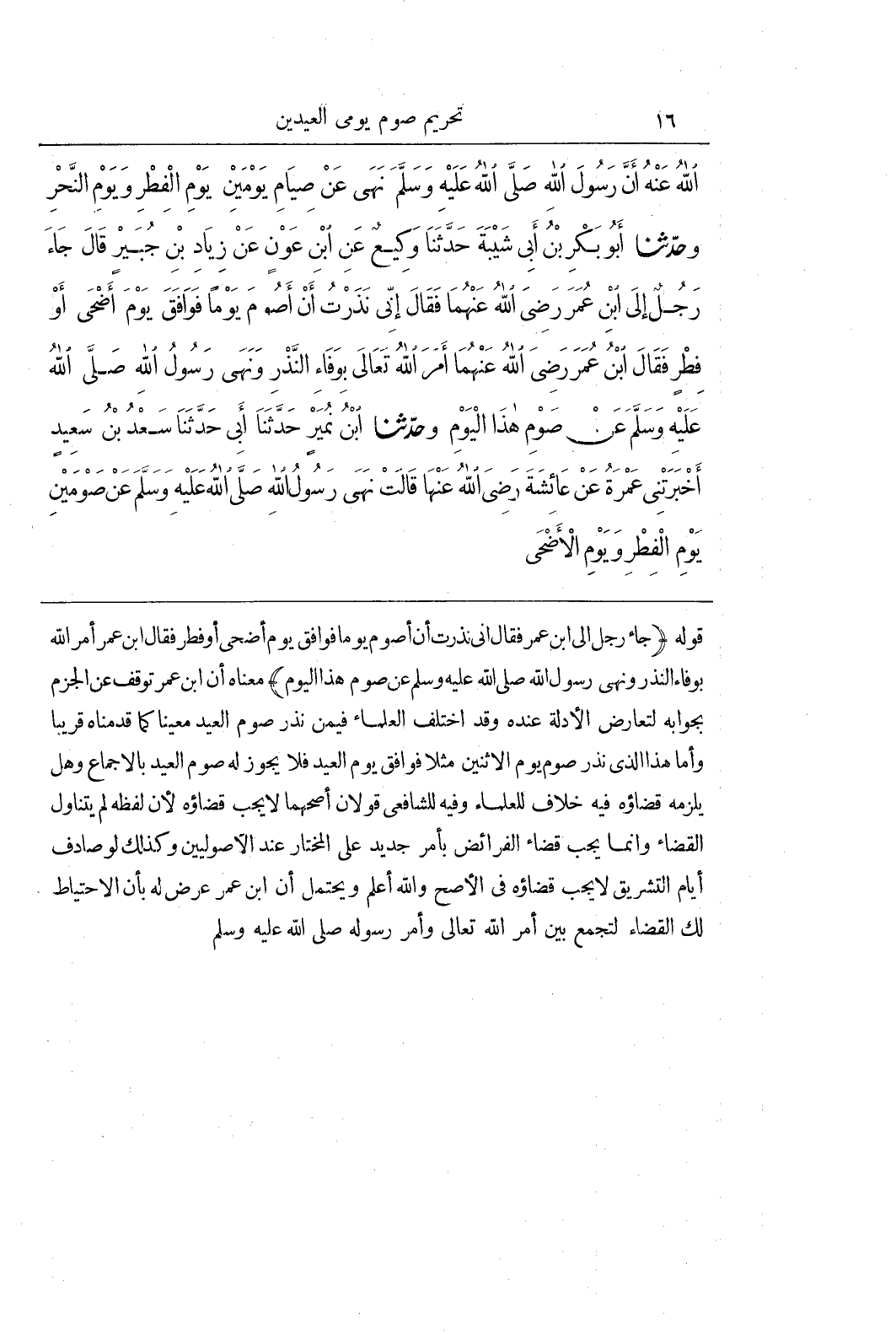 [1139] قوله (جاء رجل إلى بن عُمَرَ فَقَالَ إِنِّي نَذَرْتُ أَنْ أَصُومَ يَوْمًا فوافق يوم أضحى أو فطر فقال بن عُمَرَ أَمَرَ اللَّهُ بِوَفَاءِ النَّذْرِ وَنَهَى رَسُولَ اللَّهِ صَلَّى اللَّهُ عَلَيْهِ وَسَلَّمَ عَنْ صَوْمِ هذا اليوم) معناه أن بن عُمَرَ تَوَقَّفَ عَنِ الْجَزْمِ بِجَوَابِهِ لِتَعَارُضِ الْأَدِلَّةِ عِنْدَهُ وَقَدِ اخْتَلَفَ الْعُلَمَاءُ فِيمَنْ نَذَرَ صَوْمَ الْعِيدِ مُعَيَّنًا كَمَا قَدَّمْنَاهُ قَرِيبًا وَأَمَّا هَذَا الَّذِي نَذَرَ صَوْمَ يَوْمِ الِاثْنَيْنِ مَثَلًا فَوَافَقَ يَوْمَ الْعِيدِ فَلَا يَجُوزُ لَهُ صَوْمُ الْعِيدِ بِالْإِجْمَاعِ وَهَلْ يَلْزَمُهُ قَضَاؤُهُ فِيهِ خِلَافٌ لِلْعُلَمَاءِ وَفِيهِ لِلشَّافِعِيِّ قَوْلَانِ أَصَحُّهُمَا لَا يَجِبُ قَضَاؤُهُ لِأَنَّ لَفْظَهُ لَمْ يَتَنَاوَلِ الْقَضَاءَ وَإِنَّمَا يَجِبُ قَضَاءُ الْفَرَائِضِ بِأَمْرٍ جَدِيدٍ عَلَى الْمُخْتَارِ عِنْدَ الْأُصُولِيِّينَ وَكَذَلِكَ لَوْ صَادَفَ أَيَّامَ التَّشْرِيقِ لَا يَجِبُ قَضَاؤُهُ فِي الْأَصَحِّ وَاللَّهُ أَعْلَمُ وَيَحْتَمِلُ أن بن عُمَرَ عَرَضَ لَهُ بِأَنَّ الِاحْتِيَاطَ لَكَ الْقَضَاءُ لِتَجْمَعَ بَيْنَ أَمْرِ اللَّهِ تَعَالَى وَأَمْرِ رَسُولِهِ صَلَّى اللَّهُ عَلَيْهِ وَسَلَّمَ