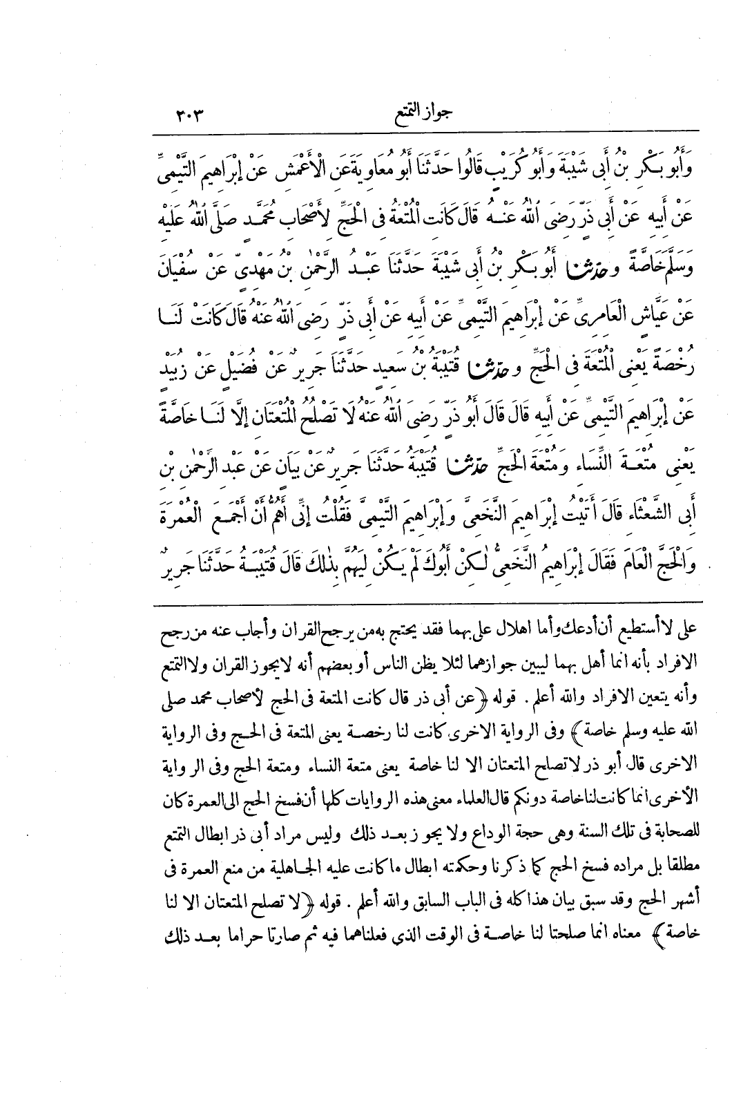 عَلِيٍّ لَا أَسْتَطِيعُ أَنْ أَدَعَكَ وَأَمَّا إِهْلَالُ عَلِيٍّ بِهِمَا فَقَدْ يَحْتَجُّ بِهِ مَنْ يُرَجِّحُ الْقِرَانَ وَأَجَابَ عَنْهُ مَنْ رَجَّحَ الْإِفْرَادَ بِأَنَّهُ إِنَّمَا أَهَلَّ بِهِمَا لِيُبَيِّنَ جَوَازَهَمَا لِئَلَّا يَظُنَّ النَّاسُ أَوْ بَعْضُهُمْ أَنَّهُ لَا يَجُوزُ الْقِرَانُ وَلَا التَّمَتُّعُ وَأَنَّهُ يَتَعَيَّنُ الْإِفْرَادُ وَاللَّهُ أَعْلَمُ قَوْلُهُ (عَنْ أَبِي ذَرٍّ قَالَ كَانَتِ الْمُتْعَةُ فِي الْحَجِّ لِأَصْحَابِ مُحَمَّدٍ صَلَّى اللَّهُ عَلَيْهِ وَسَلَّمَ خَاصَّةً) وَفِي الرِّوَايَةِ الْأُخْرَى كَانَتْ لَنَا رُخْصَةً يَعْنِي الْمُتْعَةَ فِي الْحَجِّ وَفِي الرِّوَايَةِ الْأُخْرَى قَالَ أَبُو ذَرٍّ لَا تَصْلُحُ الْمُتْعَتَانِ إِلَّا لَنَا خَاصَّةً يَعْنِي مُتْعَةَ النِّسَاءِ وَمُتْعَةَ الْحَجِّ وَفِي الرِّوَايَةِ الْأُخْرَى إِنَّمَا كَانَتْ لَنَا خَاصَّةً دُونَكُمْ قَالَ الْعُلَمَاءُ مَعْنَى هَذِهِ الرِّوَايَاتِ كُلِّهَا أَنَّ فَسْخَ الْحَجِّ إِلَى الْعُمْرَةِ كَانَ لِلصَّحَابَةِ فِي تِلْكَ السَّنَةِ وَهِيَ حَجَّةُ الْوَدَاعِ وَلَا يَجُوزُ بَعْدَ ذَلِكَ وَلَيْسَ مُرَادُ أَبِي ذَرٍّ إِبْطَالَ التَّمَتُّعِ مُطْلَقًا بَلْ مُرَادُهُ فَسْخُ الْحَجِّ كَمَا ذَكَرْنَا وَحِكْمَتُهُ إِبْطَالُ مَا كَانَتْ عَلَيْهِ الْجَاهِلِيَّةُ مِنْ مَنْعِ الْعُمْرَةِ فِي أَشْهُرِ الْحَجِّ وَقَدْ سَبَقَ بَيَانُ هَذَا كُلُّهُ فِي الْبَابِ السَّابِقِ وَاللَّهُ أَعْلَمُ قَوْلُهُ (لَا تَصْلُحُ الْمُتْعَتَانِ إِلَّا لَنَا خَاصَّةً) مَعْنَاهُ إِنَّمَا صَلَحَتَا لَنَا خَاصَّةً فِي الْوَقْتِ الَّذِي فَعَلْنَاهُمَا فِيهِ ثُمَّ صَارَتَا حَرَامًا بَعْدَ ذَلِكَ