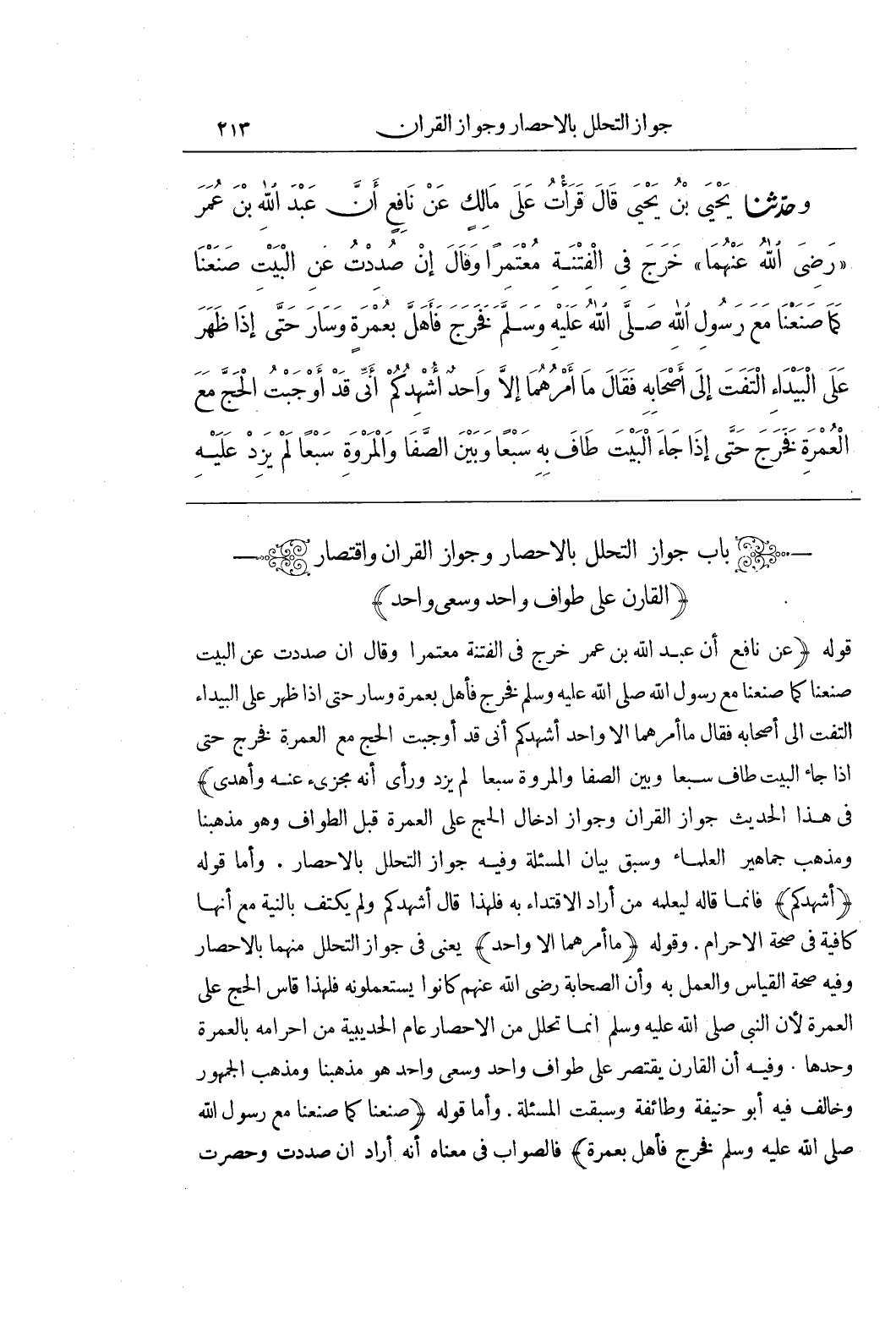 (باب جواز التحلل بالاحصار وجواز القران واقتصار)