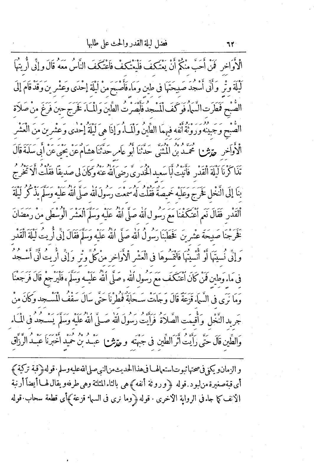 وَالزَّمَانِ وَيَكْفِي فِي صِحَّتِهَا ثُبُوتُ اسْتِعْمَالِهَا فِي هذا الْحَدِيثِ مِنَ النَّبِيِّ صَلَّى اللَّهُ عَلَيْهِ وَسَلَّمَ قَوْلُهُ (قُبَّةٍ تُرْكِيَّةٍ) أَيْ قُبَّةٌ صَغِيرَةٌ مِنْ لُبُودٍ قَوْلُهُ (وَرَوْثَةُ أَنْفِهِ) هِيَ بِالثَّاءِ الْمُثَلَّثَةِ وَهِيَ طَرَفُهُ وَيُقَالُ لَهَا أَيْضًا أَرْنَبَةُ الْأَنْفِ كَمَا جَاءَ فِي الرِّوَايَةِ الْأُخْرَى قَوْلُهُ (وَمَا نَرَى فِي السَّمَاءِ قَزَعَةً) أَيْ قِطْعَةُ سَحَابٍ قوله