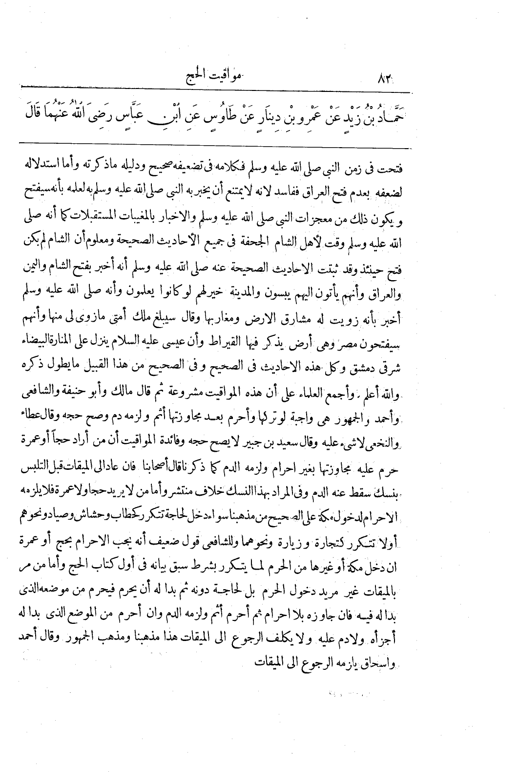 فُتِحَتْ فِي زَمَنِ النَّبِيِّ صَلَّى اللَّهُ عَلَيْهِ وَسَلَّمَ فَكَلَامُهُ فِي تَضْعِيفِهِ صَحِيحٌ وَدَلِيلُهُ مَا ذَكَرْتُهُ وَأَمَّا اسْتِدْلَالُهُ لِضَعْفِهِ بِعَدَمِ فَتْحِ الْعِرَاقِ فَفَاسِدٌ لِأَنَّهُ لَا يَمْتَنِعُ أَنْ يُخْبِرَ بِهِ النَّبِيُّ صَلَّى اللَّهُ عَلَيْهِ وَسَلَّمَ بِهِ لِعِلْمِهِ بِأَنَّهُ سَيُفْتَحُ وَيَكُونُ ذَلِكَ مِنْ مُعْجِزَاتِ النَّبِيِّ صَلَّى اللَّهُ عَلَيْهِ وَسَلَّمَ وَالْإِخْبَارِ بِالْمَغِيبَاتِ الْمُسْتَقْبَلَاتِ كَمَا أَنَّهُ صَلَّى اللَّهُ عَلَيْهِ وَسَلَّمَ وَقَّتَ لِأَهْلِ الشَّامِ الْجُحْفَةَ فِي جَمِيعِ الْأَحَادِيثِ الصَّحِيحَةِ وَمَعْلُومٌ أَنَّ الشَّامَ لَمْ يَكُنْ فُتِحَ حِينَئِذٍ وَقَدْ ثَبَتَتِ الْأَحَادِيثُ الصَّحِيحَةُ عَنْهُ صَلَّى اللَّهُ عَلَيْهِ وَسَلَّمَ أَنَّهُ أَخْبَرَ بِفَتْحِ الشَّامِ وَالْيَمَنِ وَالْعِرَاقِ وَأَنَّهُمْ يَأْتُونَ إِلَيْهِمْ يَبُسُّونَ وَالْمَدِينَةُ خَيْرٌ لَهُمْ لَوْ كَانُوا يَعْلَمُونَ وَأَنَّهُ صَلَّى اللَّهُ عَلَيْهِ وَسَلَّمَ أَخْبَرَ بِأَنَّهُ زُوِيَتْ لَهُ مَشَارِقُ الارض ومغاربها وقال سيبلغ ملك أمتي مازوى لِي مِنْهَا وَأَنَّهُمْ سَيَفْتَحُونَ مِصْرَ وَهِيَ أَرْضٌ يُذْكَرُ فِيهَا الْقِيرَاطُ وَأَنَّ عِيسَى عَلَيْهِ السَّلَامُ يَنْزِلُ عَلَى الْمَنَارَةِ الْبَيْضَاءِ شَرْقِيِّ دِمَشْقَ وَكُلُّ هَذِهِ الْأَحَادِيثُ فِي الصَّحِيحِ وَفِي الصَّحِيحِ مِنْ هَذَا الْقَبِيلِ مَا يَطُولُ ذِكْرُهُ وَاللَّهُ أَعْلَمُ وَأَجْمَعَ الْعُلَمَاءُ عَلَى أَنَّ هَذِهِ الْمَوَاقِيتَ مَشْرُوعَةٌ ثُمَّ قَالَ مَالِكٌ وَأَبُو حَنِيفَةَ وَالشَّافِعِيُّ وَأَحْمَدُ وَالْجُمْهُورُ هِيَ وَاجِبَةٌ لَوْ تَرَكَهَا وَأَحْرَمَ بَعْدَ مُجَاوَزَتِهَا أَثِمَ وَلَزِمَهُ دَمٌ وَصَحَّ حَجُّهُ وَقَالَ عَطَاءٌ وَالنَّخَعِيُّ لَا شَيْءَ عَلَيْهِ وَقَالَ سَعِيدُ بْنُ جُبَيْرٍ لَا يَصِحُّ حَجُّهُ وَفَائِدَةُ الْمَوَاقِيتِ أَنَّ مَنْ أَرَادَ حَجًّا أَوْ عُمْرَةً حَرُمَ عَلَيْهِ مُجَاوَزَتُهَا بِغَيْرِ إِحْرَامٍ وَلَزِمَهُ الدَّمُ كَمَا ذَكَرْنَا قَالَ أَصْحَابُنَا فَإِنْ عَادَ إِلَى الْمِيقَاتِ قَبْلَ التَّلَبُّسِ بِنُسُكٍ سَقَطَ عَنْهُ الدَّمُ وَفِي الْمُرَادِ بِهَذَا النُّسُكِ خِلَافٌ مُنْتَشِرٌ وَأَمَّا مَنْ لا يريد حجا ولاعمرة فَلَا يَلْزَمُهُ الْإِحْرَامُ لِدُخُولِ مَكَّةَ عَلَى الصَّحِيحِ مِنْ مَذْهَبِنَا سَوَاءٌ دَخَلَ لِحَاجَةٍ تَتَكَرَّرُ كَحَطَّابٍ وحشاش وصياد ونحوهم أولا تَتَكَرَّرُ كَتِجَارَةٍ وَزِيَارَةٍ وَنَحْوِهِمَا وَلِلشَّافِعِيِّ قَوْلٌ ضَعِيفٌ أَنَّهُ يَجِبُ الْإِحْرَامُ بِحَجٍّ أَوْ عُمْرَةٍ إِنْ دَخَلَ مَكَّةَ أَوْ غَيْرَهَا مِنَ الْحَرَمِ لِمَا يَتَكَرَّرُ بِشَرْطٍ سَبَقَ بَيَانُهُ فِي أَوَّلِ كِتَابِ الْحَجِّ وَأَمَّا مَنْ مَرَّ بِالْمِيقَاتِ غَيْرَ مُرِيدٍ دُخُولَ الْحَرَمِ بَلْ لِحَاجَةٍ دُونَهُ ثُمَّ بَدَا لَهُ أَنْ يُحْرِمَ فَيُحْرِمُ مِنْ مَوْضِعِهِ الَّذِي بَدَا لَهُ فِيهِ فَإِنْ جَاوَزَهُ بِلَا إِحْرَامٍ ثُمَّ أَحْرَمَ أَثِمَ وَلَزِمَهُ الدَّمُ وَإِنْ أَحْرَمَ مِنَ الْمَوْضِعِ الَّذِي بَدَا لَهُ أَجْزَأَهُ وَلَا دَمَ عَلَيْهِ وَلَا يُكَلَّفُ الرُّجُوعُ إِلَى الْمِيقَاتِ هَذَا مَذْهَبُنَا وَمَذْهَبُ الْجُمْهُورِ وَقَالَ أَحْمَدُ وَإِسْحَاقُ يَلْزَمُهُ الرُّجُوعُ إِلَى الْمِيقَاتِ