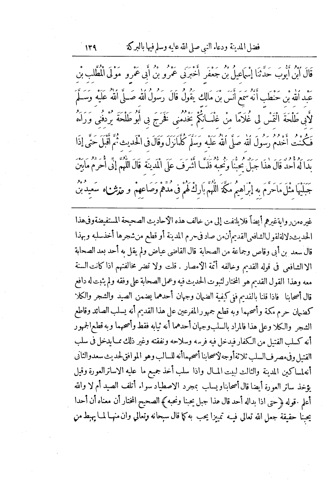 غَيْرُهُ مِنْ رِوَايَةِ غَيْرِهِمْ أَيْضًا فَلَا يُلْتَفَتُ إِلَى مَنْ خَالَفَ هَذِهِ الْأَحَادِيثَ الصَّحِيحَةَ الْمُسْتَفِيضَةَ وَفِي هَذَا الْحَدِيثِ دَلَالَةٌ لِقَوْلِ الشَّافِعِيِّ الْقَدِيمِ إِنَّ مَنْ صَادَ فِي حَرَمِ الْمَدِينَةِ أَوْ قَطَعَ مِنْ شَجَرِهَا أُخِذَ سَلَبُهُ وَبِهَذَا قَالَ سَعْدُ بْنُ أَبِي وَقَّاصٍ وَجَمَاعَةٌ مِنَ الصَّحَابَةِ قَالَ الْقَاضِي عِيَاضٌ وَلَمْ يَقُلْ بِهِ أَحَدٌ بَعْدَ الصَّحَابَةِ إِلَّا الشَّافِعِيَّ فِي قَوْلِهِ الْقَدِيمِ وَخَالَفَهُ أَئِمَّةُ الْأَمْصَارِ قُلْتُ وَلَا تَضُرُّ مُخَالَفَتُهُمْ إِذَا كَانَتِ السُّنَّةُ مَعَهُ وَهَذَا الْقَوْلُ الْقَدِيمُ هُوَ الْمُخْتَارُ لِثُبُوتِ الْحَدِيثِ فِيهِ وَعَمَلِ الصَّحَابَةِ عَلَى وَفْقِهِ وَلَمْ يَثْبُتْ لَهُ دَافِعٌ قَالَ أَصْحَابُنَا فَإِذَا قُلْنَا بِالْقَدِيمِ فَفِي كَيْفِيَّةِ الضَّمَانِ وَجْهَانِ أَحَدُهُمَا يَضْمَنُ الصَّيْدَ وَالشَّجَرَ وَالْكَلَأَ كَضَمَانِ حَرَمِ مَكَّةَ وَأَصَحُّهُمَا وَبِهِ قَطَعَ جُمْهُورُ الْمُفَرِّعِينَ عَلَى هَذَا الْقَدِيمِ أَنَّهُ يُسْلَبُ الصَّائِدُ وَقَاطِعُ الشَّجَرِ وَالْكَلَأِ وَعَلَى هَذَا فَالْمُرَادُ بِالسَّلَبِ وَجْهَانِ أَحَدُهُمَا أَنَّهُ ثِيَابُهُ فَقَطْ وَأَصَحُّهُمَا وَبِهِ قَطَعَ الْجُمْهُورُ أَنَّهُ كَسَلَبِ الْقَتِيلِ مِنَ الْكُفَّارِ فَيَدْخُلُ فِيهِ فَرَسُهُ وَسِلَاحُهُ وَنَفَقَتُهُ وَغَيْرُ ذَلِكَ مِمَّا يَدْخُلُ فِي سَلَبِ الْقَتِيلِ وَفِي مَصْرِفِ السَّلَبِ ثلاثة أوجه لأصحابنا أصحهما أَنَّهُ لِلسَّالِبِ وَهُوَ الْمُوَافِقُ لِحَدِيثِ سَعْدٍ وَالثَّانِي أَنَّهُ لِمَسَاكِينِ الْمَدِينَةِ وَالثَّالِثُ لِبَيْتِ الْمَالِ وَإِذَا سَلَبَ أَخَذَ جَمِيعَ مَا عَلَيْهِ إِلَّا سَاتِرَ الْعَوْرَةِ وَقِيلَ يُؤْخَذُ سَاتِرُ الْعَوْرَةِ أَيْضًا قَالَ أَصْحَابُنَا وَيُسْلَبُ بِمُجَرَّدِ الِاصْطِيَادِ سَوَاءٌ أَتْلَفَ الصَّيْدَ أَمْ لَا وَاللَّهُ أَعْلَمُ