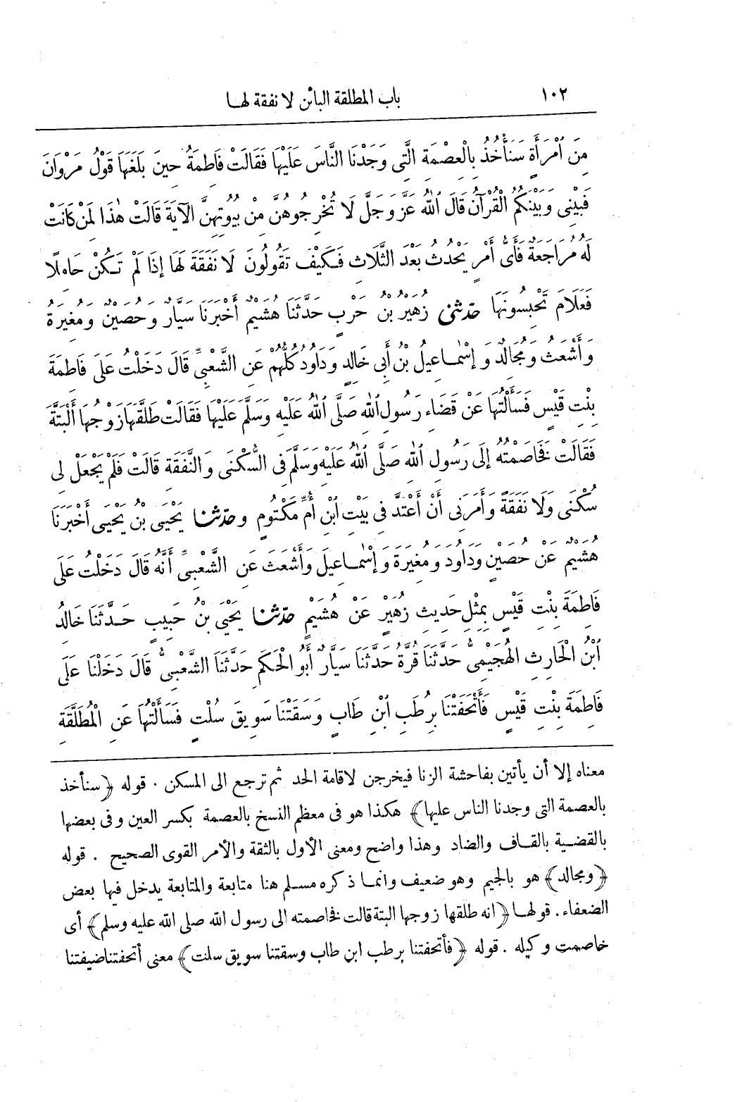 معناه إلا أن يأتين بفاحشة الزنى فَيَخْرُجْنَ لِإِقَامَةِ الْحَدِّ ثُمَّ تَرْجِعُ إِلَى الْمَسْكَنِ قَوْلُهُ (سَنَأْخُذُ بِالْعِصْمَةِ الَّتِي وَجَدْنَا النَّاسَ عَلَيْهَا) هَكَذَا هُوَ فِي مُعْظَمِ النُّسَخِ بِالْعِصْمَةِ بِكَسْرِ الْعَيْنِ وَفِي بَعْضِهَا بِالْقَضِيَّةِ بِالْقَافِ وَالضَّادِ وَهَذَا وَاضِحٌ وَمَعْنَى الْأَوَّلِ بِالثِّقَةِ وَالْأَمْرِ الْقَوِيِّ الصَّحِيحِ قَوْلُهُ (وَمُجَالِدٌ) هُوَ بِالْجِيمِ وَهُوَ ضَعِيفٌ وَإِنَّمَا ذَكَرَهُ مُسْلِمٌ هُنَا مُتَابَعَةً وَالْمُتَابَعَةُ يَدْخُلُ فِيهَا بَعْضُ الضُّعَفَاءِ قَوْلُهَا (إِنَّهُ طَلَّقَهَا زَوْجُهَا أَلْبَتَّةَ قَالَتْ فَخَاصَمْتُهُ إِلَى رَسُولِ اللَّهِ صَلَّى اللَّهُ عَلَيْهِ وَسَلَّمَ) أَيْ خَاصَمَتْ وَكِيلَهُ قَوْلُهُ (فَأَتْحَفَتْنَا برطب بن طَابٍ وَسَقَتْنَا سَوِيقَ سُلْتٍ) مَعْنَى أَتْحَفَتْنَا ضَيَّفَتْنَا