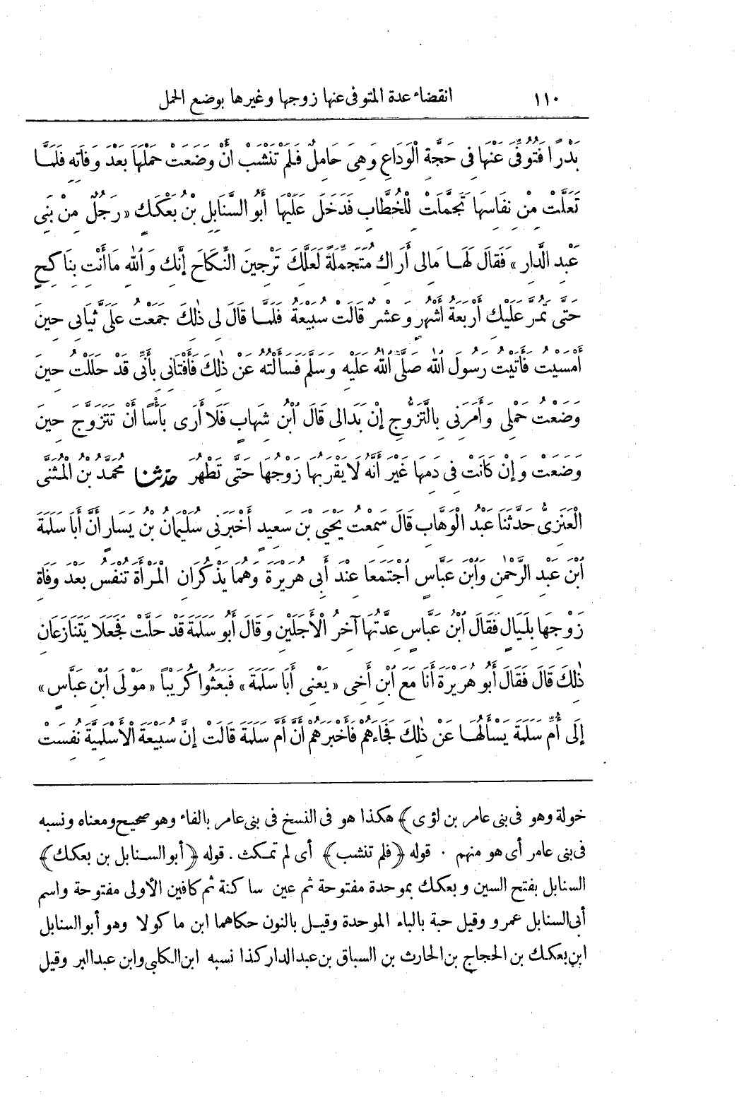 خَوْلَةَ وَهُوَ فِي بَنِي عَامِرِ بْنِ لُؤَيٍّ) هَكَذَا هُوَ فِي النُّسَخِ فِي بَنِي عَامِرِ بِالْفَاءِ وَهُوَ صَحِيحٌ وَمَعْنَاهُ وَنَسَبُهُ فِي بَنِي عَامِرٍ أَيْ هُوَ مِنْهُمْ قَوْلُهُ (فَلَمْ تَنْشَبْ) أَيْ لَمْ تَمْكُثْ قَوْلُهُ (أَبُو السَّنَابِلِ بْنُ بَعْكَكٍ) السَّنَابِلُ بِفَتْحِ السِّينِ وَبَعْكَكٌ بِمُوَحَّدَةِ مَفْتُوحَةٍ ثُمَّ عَيْنٍ سَاكِنَةٍ ثُمَّ كَافِينَ الْأُولَى مَفْتُوحَةٌ وَاسْمُ أَبِي السَّنَابِلِ عَمْرٌو وَقِيلَ حَبَّةٌ بِالْبَاءِ الموحدة وقيل بالنون حكاهما بن مَاكُولَا وَهُوَ أَبُو السَّنَابِلِ بْنُ بَعْكَكِ بْنِ الْحَجَّاجِ بْنِ الْحَارِثِ بْنِ السَّبَّاقِ بْنِ عَبْدِ الدار كذا نسبة بن الكلبى وبن عَبْدِ الْبَرِّ وَقِيلَ