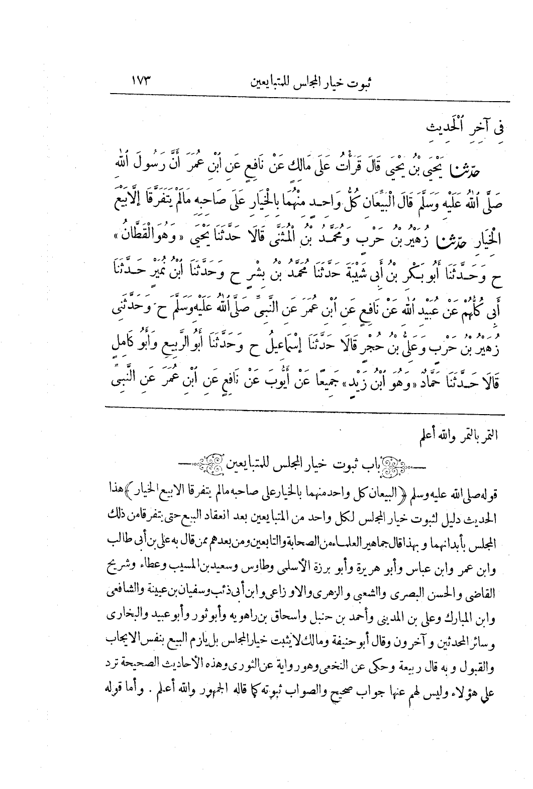 (بَاب ثُبُوتِ خِيَارِ الْمَجْلِسِ لِلْمُتَبَايِعَيْنِ