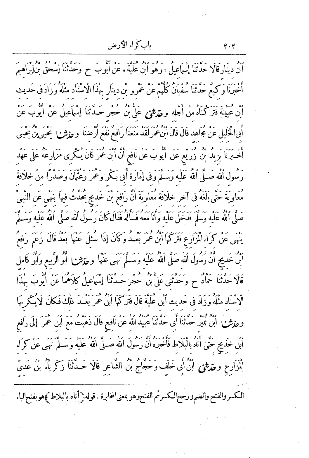 الْكَسْرَ وَالْفَتْحَ وَالضَّمَّ وَرَجَّحَ الْكَسْرَ ثُمَّ الْفَتْحَ وَهُوَ بِمَعْنَى الْمُخَابَرَةِ قَوْلُهُ (أَتَاهُ بِالْبَلَاطِ) هُوَ بفتح الباء