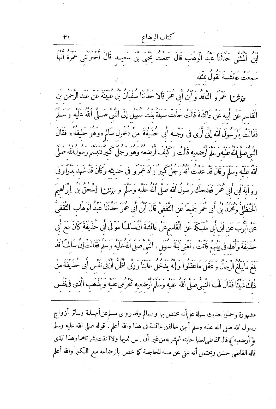 مَشْهُورَةٍ وَحَمَلُوا حَدِيثَ سَهْلَةَ عَلَى أَنَّهُ مُخْتَصٌّ بِهَا وَبِسَالِمٍ وَقَدْ رَوَى مُسْلِمٌ عَنْ أُمِّ سَلَمَةَ وَسَائِرِ أَزْوَاجُ رَسُولِ اللَّهِ صَلَّى اللَّهُ عَلَيْهِ وَسَلَّمَ أَنَّهُنَّ خَالَفْنَ عَائِشَةَ فِي هَذَا وَاللَّهُ أَعْلَمُ