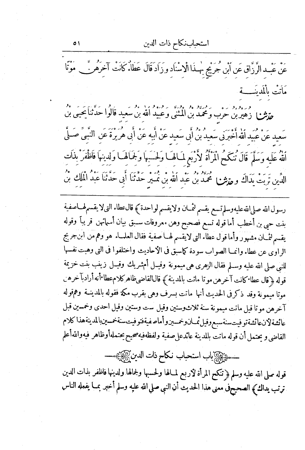 [1466] قَوْلُهُ صَلَّى اللَّهُ عَلَيْهِ وَسَلَّمَ (تُنْكَحُ الْمَرْأَةُ لِأَرْبَعٍ لِمَالِهَا وَلِحَسَبِهَا وَلِجَمَالِهَا وَلِدِينِهَا فَاظْفَرْ بِذَاتِ الدِّينِ تَرِبَتْ يَدَاكَ) الصَّحِيحُ فِي مَعْنَى هَذَا الْحَدِيثِ أَنَّ النَّبِيَّ صَلَّى اللَّهُ عَلَيْهِ وَسَلَّمَ أَخْبَرَ بِمَا يَفْعَلُهُ النَّاسُ