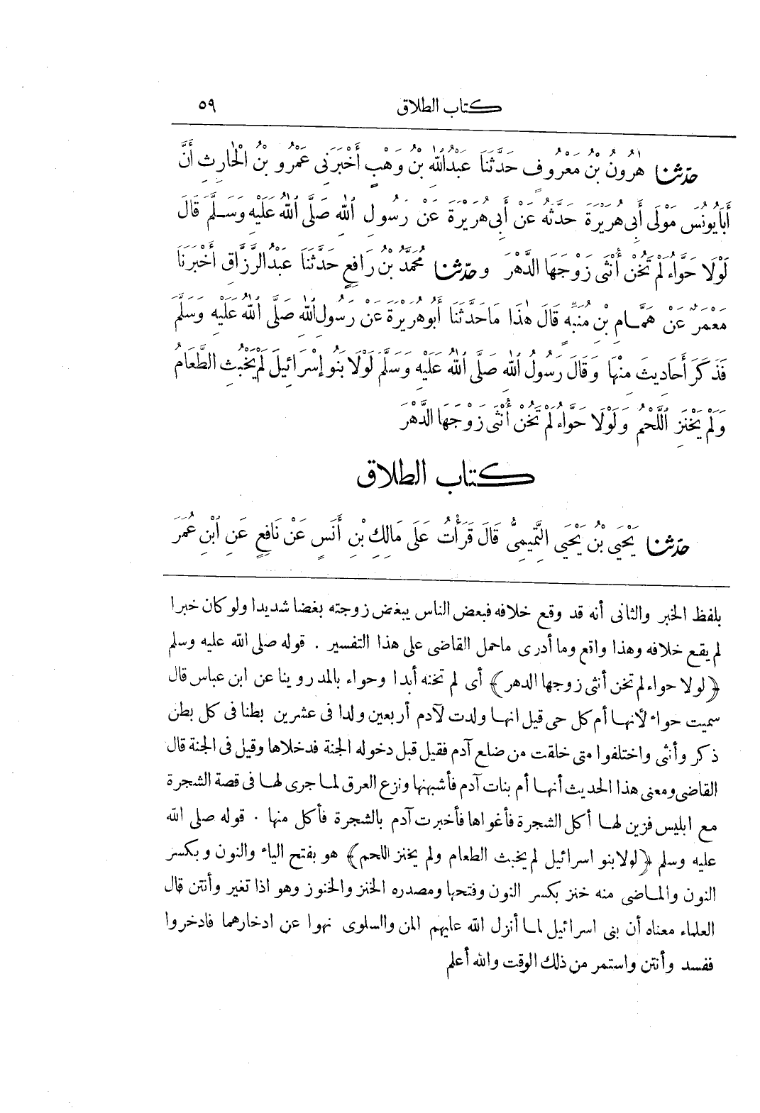 [1470] قَوْلُهُ صَلَّى اللَّهُ عَلَيْهِ وَسَلَّمَ (لَوْلَا حَوَّاءُ لَمْ تَخُنْ أُنْثَى زَوْجَهَا الدَّهْرَ) أَيْ لَمْ تخنه أبدا وحواء بالمد روينا عن بن عَبَّاسٍ قَالَ سُمِّيَتْ حَوَّاءُ لِأَنَّهَا أُمُّ كُلِّ حَيٍّ قِيلَ إِنَّهَا وَلَدَتْ لِآدَمَ أَرْبَعِينَ وَلَدًا فِي عِشْرِينَ بَطْنًا فِي كُلِّ بَطْنٍ ذَكَرٌ وَأُنْثَى وَاخْتَلَفُوا مَتَى خُلِقَتْ مِنْ ضِلْعِ آدَمَ فقيل قبل دخولها الْجَنَّةَ فَدَخَلَاهَا وَقِيلَ فِي الْجَنَّةِ قَالَ الْقَاضِي وَمَعْنَى هَذَا الْحَدِيثِ أَنَّهَا أُمُّ بَنَاتِ آدَمَ فأشبهنها ونزع العرق لما جرى لها فِي قِصَّةِ الشَّجَرَةِ مَعَ إِبْلِيسَ فَزَيَّنَ لَهَا أَكْلَ الشَّجَرَةِ فَأَغْوَاهَا فَأَخْبَرَتْ آدَمَ بِالشَّجَرَةِ فَأَكَلَ مِنْهَا قَوْلُهُ صَلَّى اللَّهُ عَلَيْهِ وَسَلَّمَ (لَوْلَا بَنُو إِسْرَائِيلَ لَمْ يَخْبُثِ الطَّعَامُ وَلَمْ يَخْنَزِ اللَّحْمُ) هُوَ بِفَتْحِ الْيَاءِ وَالنُّونِ وَبِكَسْرِ النُّونِ وَالْمَاضِي مِنْهُ خَنِزَ بِكَسْرِ النُّونِ وَفَتْحِهَا وَمَصْدَرُهُ الْخَنَزُ وَالْخُنُوزُ وَهُوَ إِذَا تَغَيَّرَ وَأَنْتَنَ قَالَ الْعُلَمَاءُ مَعْنَاهُ أَنَّ بَنِي إِسْرَائِيلَ لَمَّا أَنْزَلَ اللَّهُ عَلَيْهِمُ الْمَنَّ وَالسَّلْوَى نُهُوا عَنِ ادِّخَارِهَمَا فَادَّخَرُوا فَفَسَدَ وَأَنْتَنَ وَاسْتَمَرَّ مِنْ ذَلِكَ الْوَقْتِ والله أعلم