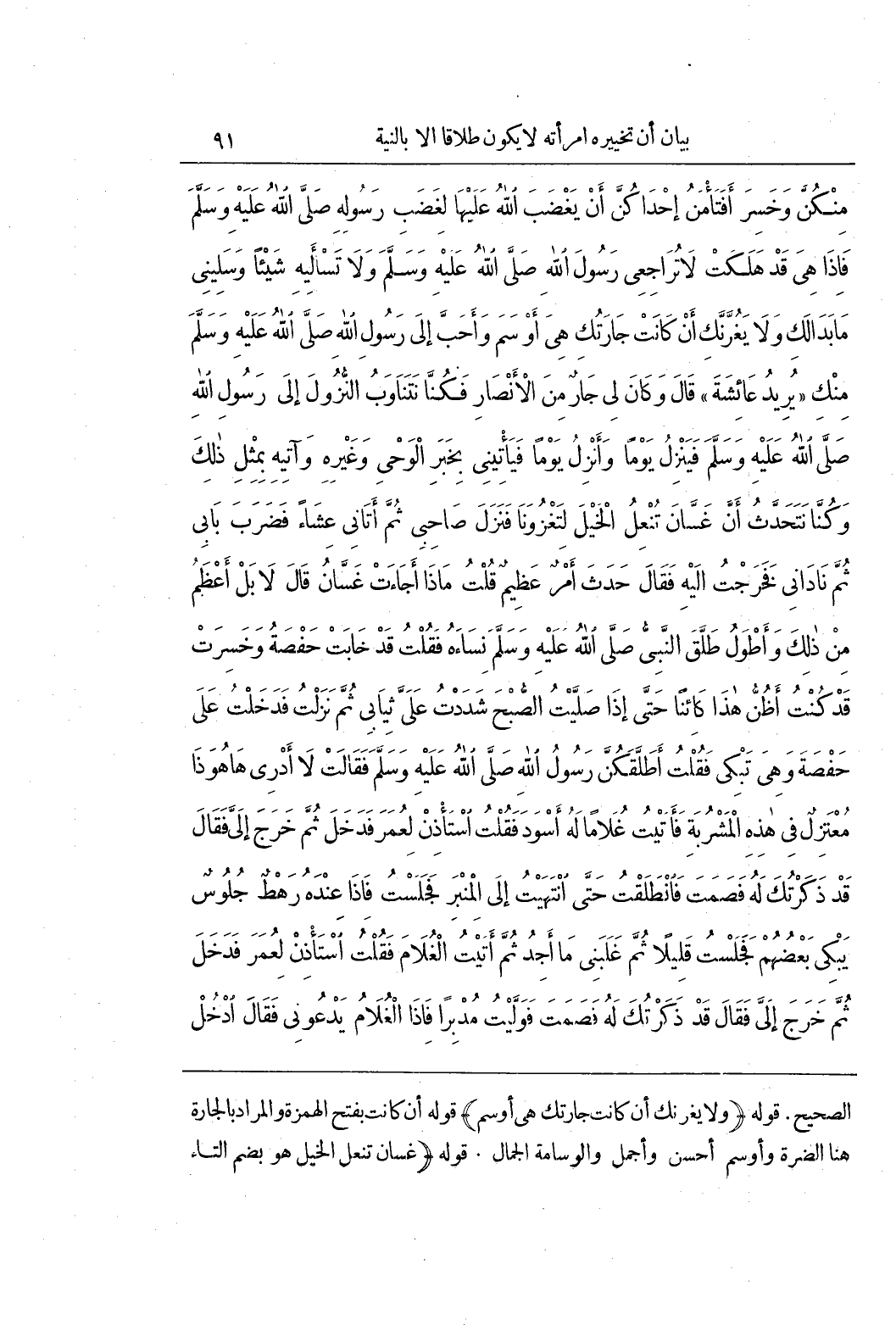 الصَّحِيحِ قَوْلُهُ (وَلَا يَغُرَّنَّكِ أَنْ كَانَتْ جَارَتُكِ هِيَ أَوْسَمَ) قَوْلُهُ أَنْ كَانَتْ بِفَتْحِ الْهَمْزَةِ وَالْمُرَادُ بِالْجَارَةِ هُنَا الضَّرَّةُ وَأَوْسَمَ أَحْسَنَ وَأَجْمَلَ وَالْوَسَامَةُ الْجَمَالُ قَوْلُهُ (غَسَّانُ تُنْعِلُ الْخَيْلَ هُوَ بِضَمِّ التَّاءِ