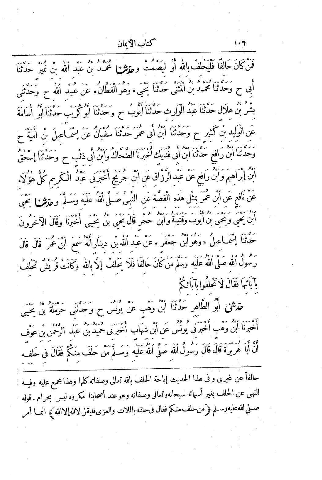 حَالِفًا عَنْ غَيْرِي وَفِي هَذَا الْحَدِيثِ إِبَاحَةُ الْحَلِفِ بِاللَّهِ تَعَالَى وَصِفَاتِهِ كُلِّهَا وَهَذَا مُجْمَعٌ عَلَيْهِ وَفِيهِ النَّهْيُ عَنِ الْحَلِفِ بِغَيْرِ أَسْمَائِهِ سُبْحَانَهُ وَتَعَالَى وَصِفَاتِهِ وَهُوَ عِنْدَ أَصْحَابِنَا مَكْرُوهٌ ليس بحرام قَوْلُهُ صَلَّى اللَّهُ عَلَيْهِ وَسَلَّمَ (مَنْ حَلَفَ مِنْكُمْ فَقَالَ فِي حَلِفِهِ بِاللَّاتِ وَالْعُزَّى فَلْيَقُلْ لَا إِلَهَ