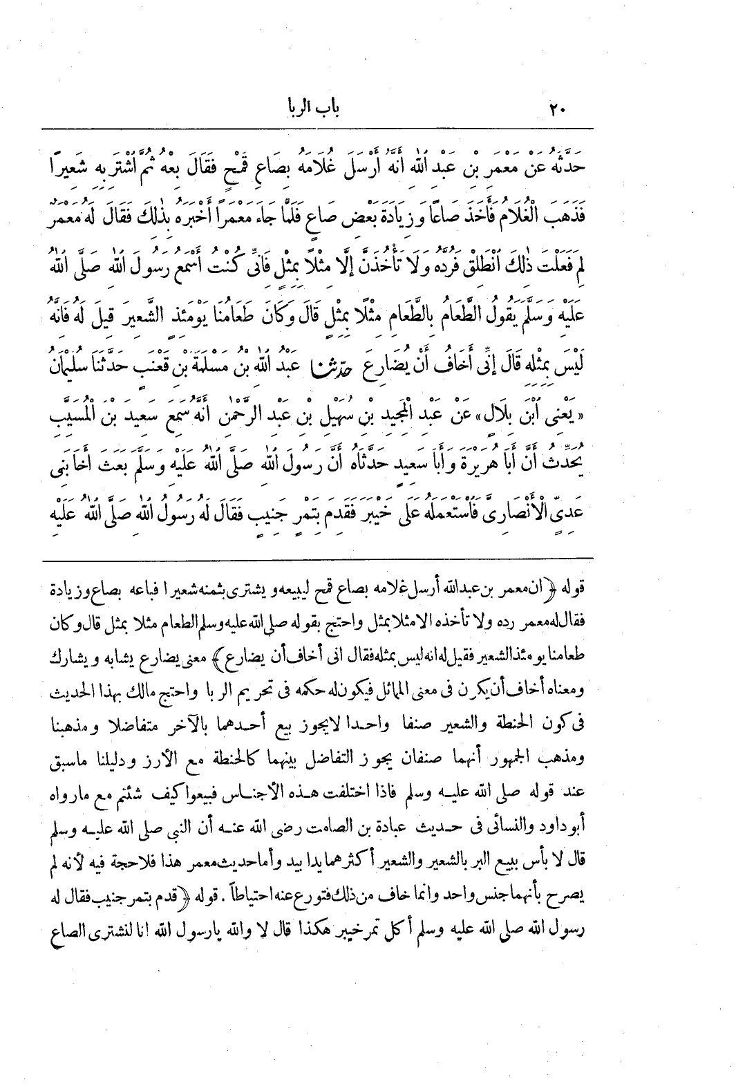 [1592] قَوْلُهُ (إِنَّ مَعْمَرَ بْنَ عَبْدِ اللَّهِ أَرْسَلَ غُلَامَهُ بِصَاعِ قَمْحٍ لِيَبِيعَهُ وَيَشْتَرِيَ بِثَمَنِهِ شَعِيرًا فَبَاعَهُ بِصَاعٍ وَزِيَادَةٍ فَقَالَ لَهُ مَعْمَرٌ رُدَّهُ وَلَا تَأْخُذْهُ إِلَّا مِثْلًا بِمِثْلٍ وَاحْتَجَّ بِقَوْلِهِ صَلَّى اللَّهُ عَلَيْهِ وَسَلَّمَ الطَّعَامُ مِثْلًا بِمِثْلٍ قَالَ وَكَانَ طَعَامُنَا يَوْمئِذٍ الشَّعِيرَ فَقِيلَ لَهُ إِنَّهُ لَيْسَ بِمِثْلِهِ فَقَالَ إِنِّي أَخَافُ أَنْ يُضَارِعَ) مَعْنَى يُضَارِعُ يُشَابِهُ وَيُشَارِكُ وَمَعْنَاهُ أَخَافُ أَنْ يَكُونَ فِي مَعْنَى الْمُمَاثِلِ فَيَكُونَ لَهُ حُكْمُهُ فِي تَحْرِيمِ الرِّبَا وَاحْتَجَّ مَالِكٌ بِهَذَا الْحَدِيثِ فِي كَوْنِ الْحِنْطَةِ وَالشَّعِيرِ صِنْفًا وَاحِدًا لَا يَجُوزُ بَيْعُ أَحَدِهِمَا بِالْآخَرِ مُتَفَاضِلًا وَمَذْهَبُنَا وَمَذْهَبُ الْجُمْهُورِ أَنَّهُمَا صِنْفَانِ يَجُوزُ التَّفَاضُلُ بَيْنَهُمَا كَالْحِنْطَةِ مَعَ الْأَرُزِّ وَدَلِيلُنَا مَا سَبَقَ عِنْدَ قَوْلِهِ صَلَّى اللَّهُ عَلَيْهِ وَسَلَّمَ فَإِذَا اخْتَلَفَتْ هَذِهِ الْأَجْنَاسُ فَبِيعُوا كَيْفَ شِئْتُمْ مَعَ مَا رَوَاهُ أَبُو دَاوُدَ وَالنَّسَائِيُّ فِي حَدِيثِ عُبَادَةَ بْنِ الصَّامِتِ رَضِيَ اللَّهُ عَنْهُ أَنَّ النَّبِيَّ صَلَّى اللَّهُ عَلَيْهِ وَسَلَّمَ قَالَ لَا بَأْسَ بِبَيْعِ الْبُرِّ بِالشَّعِيرِ وَالشَّعِيرُ أَكْثَرُهُمَا يَدًا بِيَدٍ وَأَمَّا حَدِيثُ مَعْمَرٍ هَذَا فَلَا حُجَّةَ فِيهِ لِأَنَّهُ لَمْ يُصَرِّحْ بِأَنَّهُمَا جِنْسٌ وَاحِدٌ وَإِنَّمَا خَافَ مِنْ ذَلِكَ فَتَوَرَّعَ عَنْهُ احْتِيَاطًا قَوْلُهُ (قَدِمَ بِتَمْرٍ جَنِيبٍ فَقَالَ لَهُ