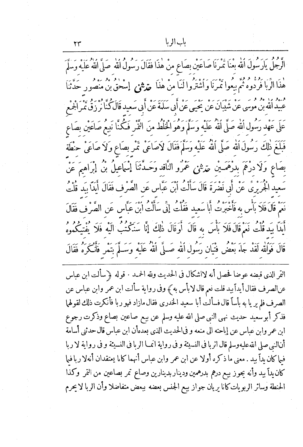[1594] عَنِ الصَّرْفِ فَقَالَ أَيَدًا بِيَدٍ قُلْتُ نَعَمْ قَالَ لَا بَأْسَ بِهِ) وَفِي رِوَايَةٍ سألت بن عمر وبن عَبَّاسٍ عَنِ الصَّرْفِ فَلَمْ يَرَيَا بِهِ بَأْسًا قَالَ فَسَأَلْتُ أَبَا سَعِيدٍ الْخُدْرِيَّ فَقَالَ مَا زَادَ فَهُوَ رِبًا فَأَنْكَرْتُ ذَلِكَ لِقَوْلِهِمَا فَذَكَرَ أَبُو سَعِيدٍ حَدِيثَ نَهْيِ النَّبِيِّ صَلَّى اللَّهُ عَلَيْهِ وَسَلَّمَ عَنِ بَيْعِ صَاعَيْنِ بِصَاعٍ وَذَكَرْتُ رجوع بن عمر وبن عَبَّاسٍ عَنْ إِبَاحَتِهِ إِلَى مَنْعِهِ وَفِي الْحَدِيثِ الذي بعده أن بن عَبَّاسٍ قَالَ حَدَّثَنِي أُسَامَةُ