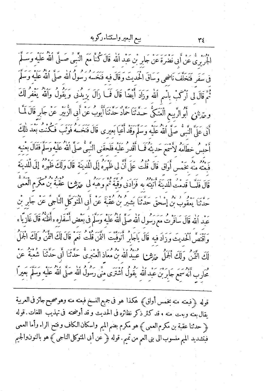 قَوْلُهُ (فَبِعْتُهُ مِنْهُ بِخَمْسِ أَوَاقٍ) هَكَذَا هُوَ فِي جَمِيعِ النُّسَخِ فَبِعْتُهُ مِنْهُ وَهُوَ صَحِيحٌ جَائِزٌ فِي الْعَرَبِيَّةِ يُقَالُ بِعْتُهُ وَبِعْتُ مِنْهُ وَقَدْ كَثُرَ ذِكْرُ نَظَائِرِهِ فِي الْحَدِيثِ وَقَدْ أَوْضَحْتُهُ فِي تَهْذِيبِ اللُّغَاتِ قَوْلُهُ (حَدَّثَنَا عُقْبَةُ بْنُ مُكْرَمٍ الْعَمِّيُّ) هُوَ مُكْرَمٌ بِضَمِّ الْمِيمِ وَإِسْكَانِ الْكَافِ وَفَتْحِ الرَّاءِ وَأَمَّا الْعَمِّيُّ فَبِتَشْدِيدِ الْمِيمِ مَنْسُوبٌ إِلَى بَنِي الْعَمِّ مِنْ تَمِيمٍ قَوْلُهُ (عَنْ أَبِي الْمُتَوَكِّلِ النَّاجِيِّ) هُوَ بِالنُّونِ والجيم