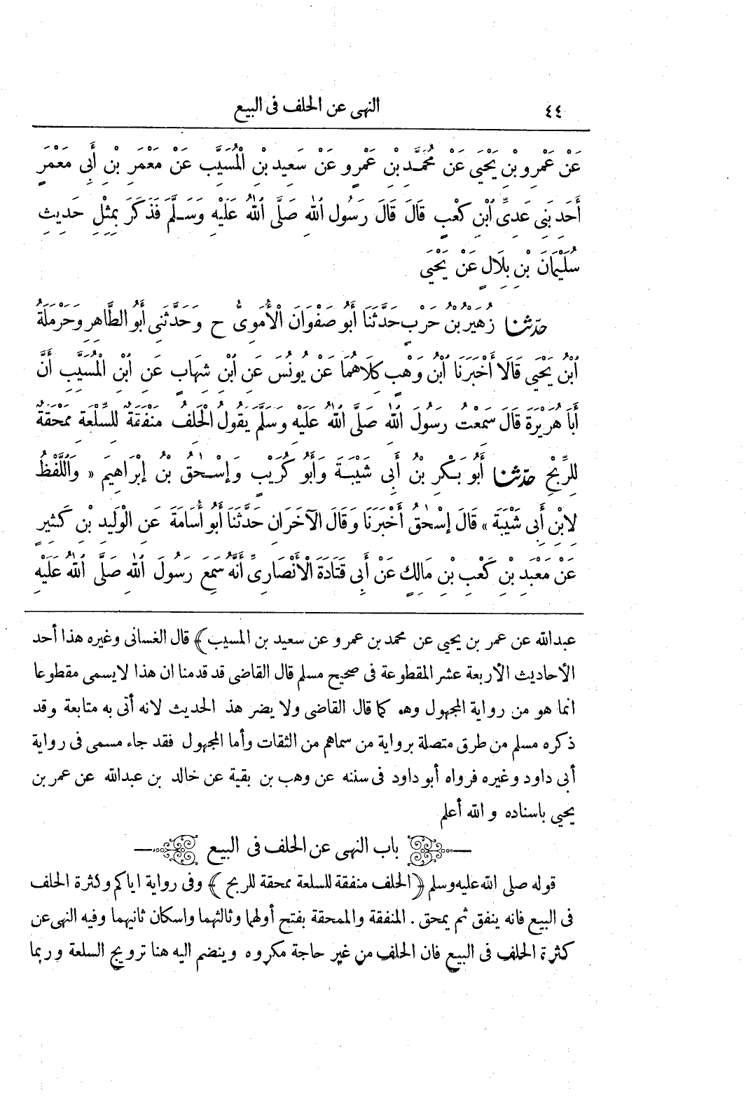 عَبْدِ اللَّهِ عَنْ عُمَرَ بْنِ يَحْيَى عَنْ مُحَمَّدِ بْنِ عَمْرٍو عَنْ سَعِيدِ بْنِ الْمُسَيِّبِ) قَالَ الْغَسَّانِيُّ وَغَيْرُهُ هَذَا أَحَدُ الْأَحَادِيثِ الْأَرْبَعَةَ عَشَرَ الْمَقْطُوعَةِ فِي صَحِيحِ مُسْلِمٍ قَالَ الْقَاضِي قَدْ قَدَّمْنَا أَنَّ هَذَا لَا يُسَمَّى مَقْطُوعًا إِنَّمَا هُوَ مِنْ رِوَايَةِ الْمَجْهُولِ وَهُوَ كَمَا قَالَ الْقَاضِي وَلَا يَضُرُّ هَذَا الْحَدِيثُ لِأَنَّهُ أَتَى بِهِ مُتَابَعَةً وَقَدْ ذَكَرَهُ مُسْلِمٌ مِنْ طُرُقٍ مُتَّصِلَةٍ بِرِوَايَةِ مَنْ سَمَّاهُمْ مِنَ الثِّقَاتِ وَأَمَّا الْمَجْهُولُ فَقَدْ جَاءَ مُسَمًّى فِي رِوَايَةِ أَبِي دَاوُدَ وَغَيْرِهِ فَرَوَاهُ أَبُو دَاوُدَ فِي سُنَنِهِ عَنْ وَهْبِ بْنِ بَقِيَّةَ عَنْ خَالِدِ بن عبد الله عن عمر بن يحيى إسناده وَاللَّهُ أَعْلَمُ