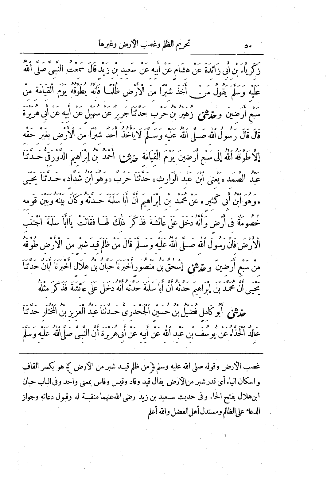 [1612] وَقَوْلُهُ صَلَّى اللَّهُ عَلَيْهِ وَسَلَّمَ (مَنْ ظَلَمَ قِيدَ شِبْرٍ مِنَ الْأَرْضِ) هُوَ بِكَسْرِ الْقَافِ وَإِسْكَانِ الْيَاءِ أَيْ قَدْرَ شِبْرٍ مِنَ الْأَرْضِ يُقَالُ قِيدَ وَقَادَ وَقِيسَ وَقَاسَ بِمَعْنًى وَاحِدٍ وَفِي الْبَابِ حَبَّانُ بْنُ هِلَالٍ بِفَتْحِ الْحَاءِ وَفِي حَدِيثِ سَعِيدِ بْنِ زَيْدٍ رَضِيَ اللَّهُ عَنْهُمَا مَنْقَبَةٌ لَهُ وَقَبُولُ دُعَائِهِ وجواز الدعاء على الظالم ومستدل أَهْلِ الْفَضْلِ وَاللَّهُ أَعْلَمُ