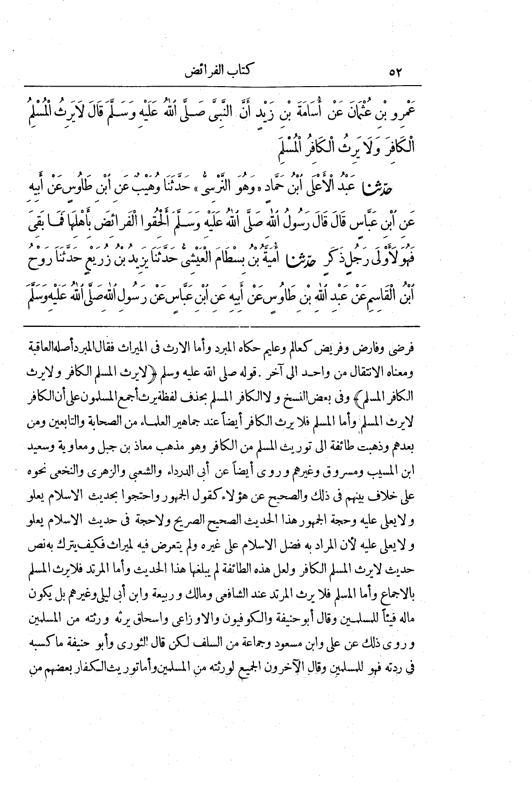 [1614] (لَا يَرِثُ الْمُسْلِمُ الْكَافِرَ وَلَا يَرِثُ الْكَافِرُ الْمُسْلِمَ) وَفِي بَعْضِ النُّسَخِ وَلَا الْكَافِرُ الْمُسْلِمَ بِحَذْفِ لَفْظَةِ يَرِثُ أَجْمَعَ الْمُسْلِمُونَ عَلَى أَنَّ الْكَافِرَ لَا يَرِثُ الْمُسْلِمَ وَأَمَّا الْمُسْلِمُ فَلَا يَرِثُ الْكَافِرَ أَيْضًا عِنْدَ جَمَاهِيرِ الْعُلَمَاءِ مِنَ الصَّحَابَةِ وَالتَّابِعِينَ وَمَنْ بَعْدَهُمْ وَذَهَبَتْ طَائِفَةٌ إِلَى تَوْرِيثِ الْمُسْلِمِ مِنَ الْكَافِرِ وَهُوَ مَذْهَبُ مُعَاذِ بْنِ جَبَلٍ وَمُعَاوِيَةَ وَسَعِيدِ بْنِ الْمُسَيِّبِ وَمَسْرُوقٍ وَغَيْرِهِمْ وَرُوِيَ أَيْضًا عَنْ أَبِي الدَّرْدَاءِ وَالشَّعْبِيِّ وَالزُّهْرِيِّ وَالنَّخَعِيِّ نَحْوُهُ عَلَى خِلَافٍ بَيْنَهُمْ فِي ذَلِكَ وَالصَّحِيحُ عَنْ هَؤُلَاءِ كَقَوْلِ الْجُمْهُورِ وَاحْتَجُّوا بِحَدِيثِ الْإِسْلَامِ يعلو ولا يعلى عليه وحجة الجمهور هنا الْحَدِيثُ الصَّحِيحُ الصَّرِيحُ وَلَا حُجَّةَ فِي حَدِيثِ الْإِسْلَامِ يَعْلُو وَلَا يُعْلَى عَلَيْهِ لِأَنَّ الْمُرَادَ بِهِ فَضْلُ الْإِسْلَامِ عَلَى غَيْرِهِ وَلَمْ يَتَعَرَّضْ فِيهِ لِمِيرَاثٍ فَكَيْفَ يُتْرَكُ بِهِ نَصُّ حَدِيثِ لَا يَرِثُ الْمُسْلِمُ الْكَافِرَ وَلَعَلَّ هَذِهِ الطَّائِفَةَ لَمْ يَبْلُغْهَا هَذَا الْحَدِيثُ وَأَمَّا الْمُرْتَدُّ فَلَا يَرِثُ الْمُسْلِمَ بِالْإِجْمَاعِ وَأَمَّا الْمُسْلِمُ فَلَا يَرِثُ المرتد عند الشافعي ومالك وربيعة وبن أَبِي لَيْلَى وَغَيْرِهِمْ بَلْ يَكُونُ مَالُهُ فَيْئًا لِلْمُسْلِمِينَ وَقَالَ أَبُو حَنِيفَةَ وَالْكُوفِيُّونَ وَالْأَوْزَاعِيُّ وَإِسْحَاقُ يَرِثُهُ وَرَثَتُهُ مِنَ الْمُسْلِمِينَ وَرُوِيَ ذَلِكَ عَنْ على وبن مَسْعُودٍ وَجَمَاعَةٍ مِنَ السَّلَفِ لَكِنْ قَالَ الثَّوْرِيُّ وَأَبُو حَنِيفَةَ مَا كَسَبَهُ فِي رِدَّتِهِ فَهُوَ لِلْمُسْلِمِينَ وَقَالَ الْآخَرُونَ الْجَمِيعُ لِوَرَثَتِهِ مِنَ الْمُسْلِمِينَ وَأَمَّا تَوْرِيثُ الْكُفَّارِ بَعْضِهِمْ مِنْ