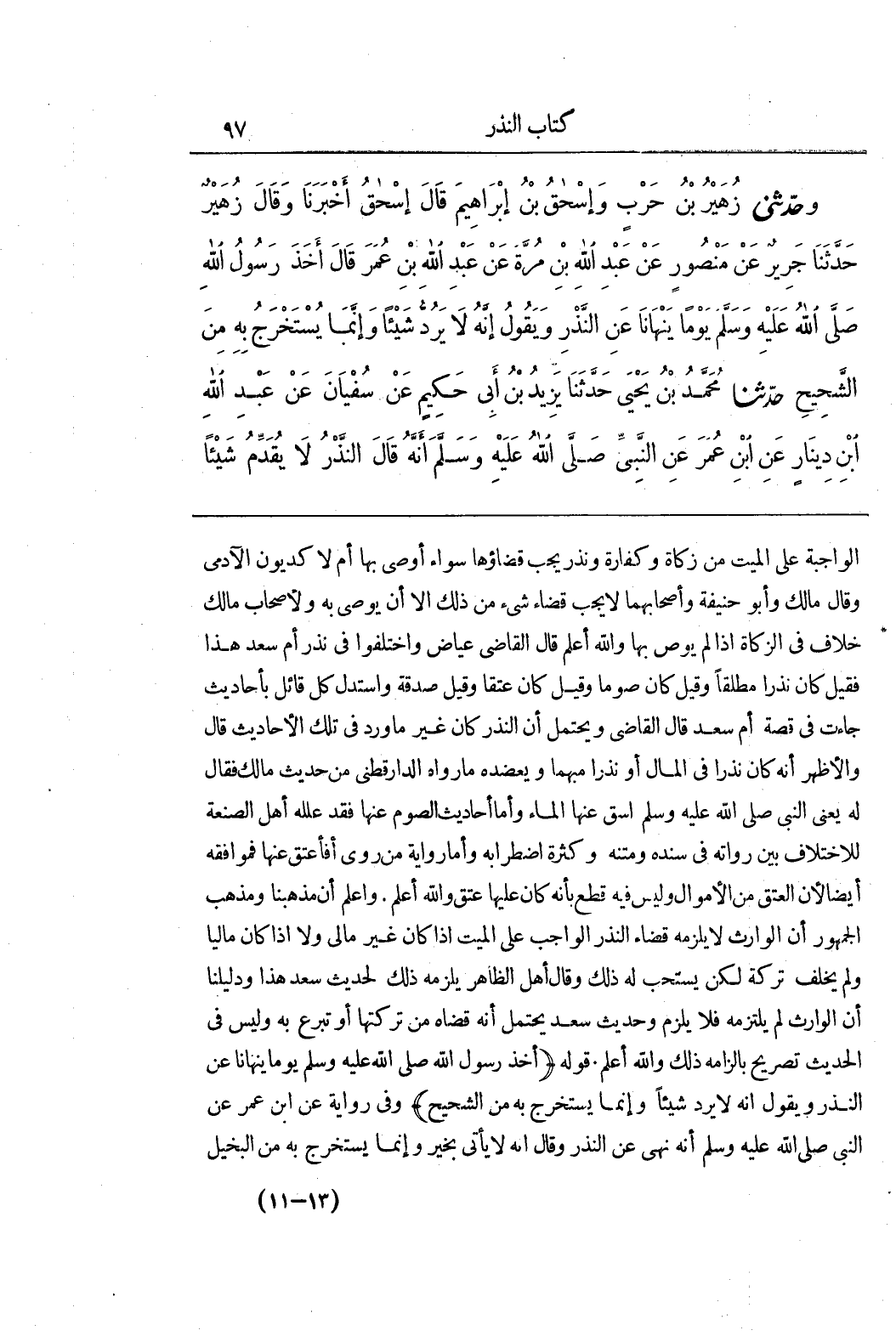 [1639] النَّذْرِ وَيَقُولُ إِنَّهُ لَا يَرُدُّ شَيْئًا وَإِنَّمَا يُسْتَخْرَجُ بِهِ مِنَ الشحيح) وفي رواية عن بن عُمَرَ عَنِ النَّبِيِّ صَلَّى اللَّهُ عَلَيْهِ وَسَلَّمَ أَنَّهُ نَهَى عَنِ النَّذْرِ وَقَالَ إِنَّهُ لَا يَأْتِي بِخَيْرٍ وَإِنَّمَا يُسْتَخْرَجُ بِهِ مِنَ الْبَخِيلِ