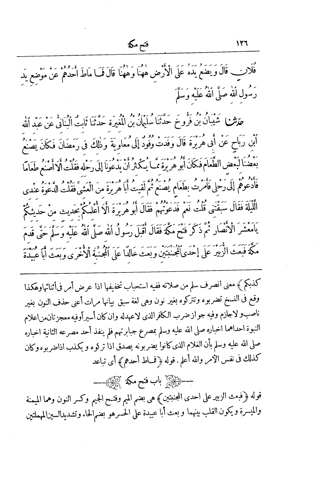 [1780] (فَبَعَثَ الزُّبَيْرَ عَلَى إِحْدَى الْمُجَنِّبَتَيْنِ) هِيَ بِضَمِّ الْمِيمِ وَفَتْحِ الْجِيمِ وَكَسْرِ النُّونِ وَهُمَا الْمَيْمَنَةُ وَالْمَيْسَرَةُ وَيَكُونُ الْقَلْبُ بَيْنَهُمَا وَبَعَثَ أَبَا عُبَيْدَةَ على الحسر هو بصم الْحَاءِ وَتَشْدِيدِ السِّينِ الْمُهْمَلَتَيْنِ)