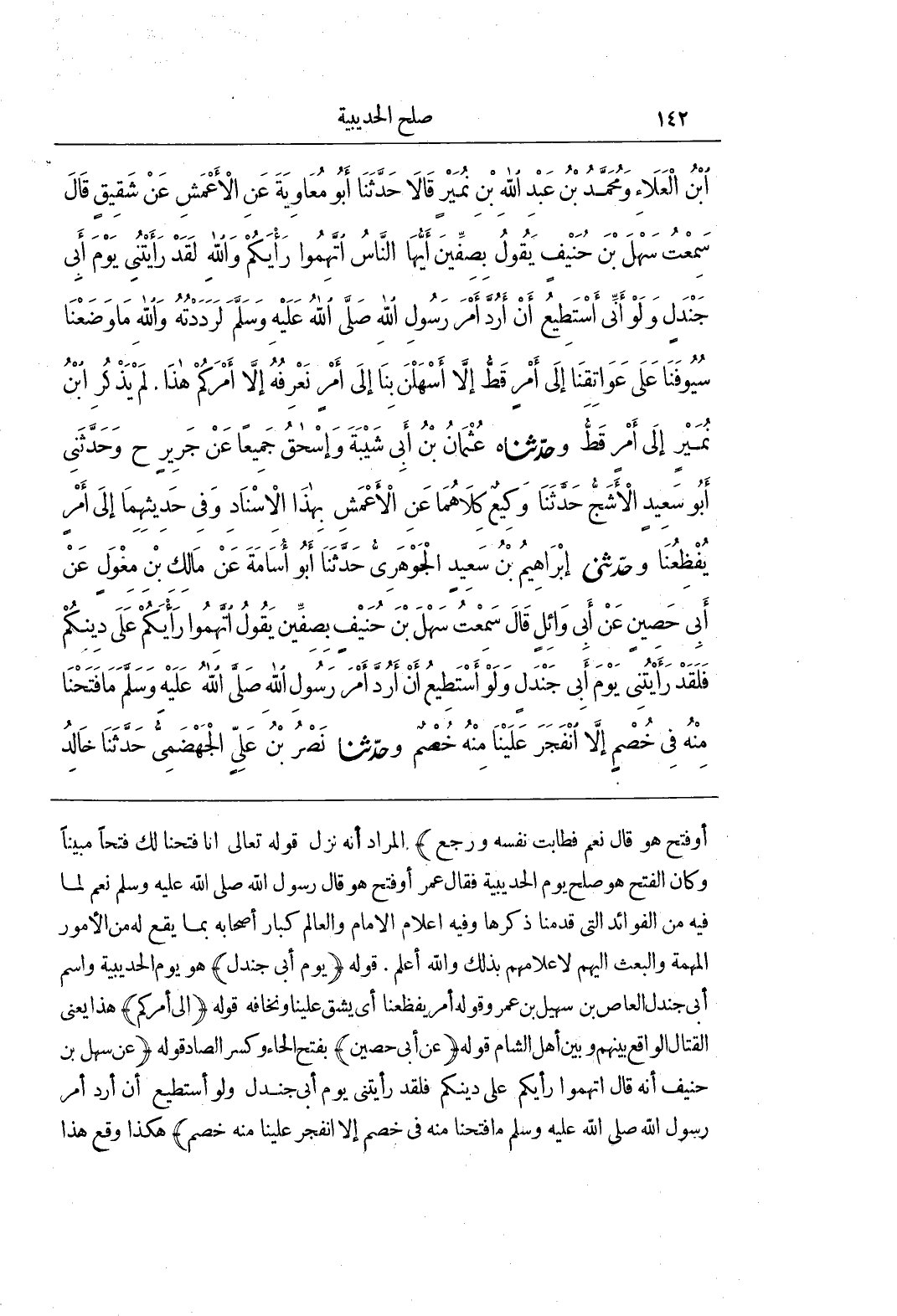 أو فتح هُوَ قَالَ نَعَمْ فَطَابَتْ نَفْسُهُ وَرَجَعَ) الْمُرَادُ أَنَّهُ نَزَلَ قَوْلُهُ تَعَالَى إِنَّا فَتَحْنَا لَكَ فتحا مبينا وَكَانَ الْفَتْحُ هُوَ صُلْحَ يَوْمِ الْحُدَيْبِيَةِ فَقَالَ عمر أو فتح هُوَ قَالَ رَسُولُ اللَّهِ صَلَّى اللَّهُ عَلَيْهِ وَسَلَّمَ نَعَمْ لِمَا فِيهِ مِنَ الْفَوَائِدِ الَّتِي قَدَّمْنَا ذِكْرَهَا وَفِيهِ إِعْلَامُ الْإِمَامِ وَالْعَالِمِ كِبَارَ أَصْحَابِهِ بمَا يَقَعُ لَهُ مِنَ الْأُمُورِ الْمُهِمَّةِ وَالْبَعْثِ إِلَيْهِمْ لِإِعْلَامِهِمْ بِذَلِكَ وَاللَّهُ أَعْلَمُ قَوْلُهُ (يَوْمُ أَبِي جَنْدَلٍ) هُوَ يَوْمُ الْحُدَيْبِيَةِ وَاسْمُ أبي جندل العاص بن سهيل بن عمر وقوله أمر بفظعنا أي يشق علينا ونخافه قوله (إلى أَمْرَكُمْ) هَذَا يَعْنِي الْقِتَالَ الْوَاقِعَ بَيْنَهُمْ وَبَيْنَ أَهْلِ الشَّامِ قَوْلُهُ (عَنْ أَبِي حَصِينٍ) بِفَتْحِ الْحَاءِ وَكَسْرِ الصَّادِ قَوْلُهُ (عَنْ سَهْلِ بْنِ حُنَيْفٍ أَنَّهُ قَالَ اتَّهِمُوا رَأْيَكُمْ عَلَى دِينِكُمْ فَلَقَدْ رَأَيْتُنِي يَوْمَ أَبِي جَنْدَلٍ وَلَوْ أَسْتَطِيعُ أَنْ أَرُدَّ أَمْرِ رَسُولِ اللَّهِ صَلَّى اللَّهُ عَلَيْهِ وَسَلَّمَ مَا فَتَحْنَا مِنْهُ فِي خُصْمٍ إِلَّا انْفَجَرَ عَلَيْنَا مِنْهُ خُصْمٌ) هَكَذَا وَقَعَ هذا