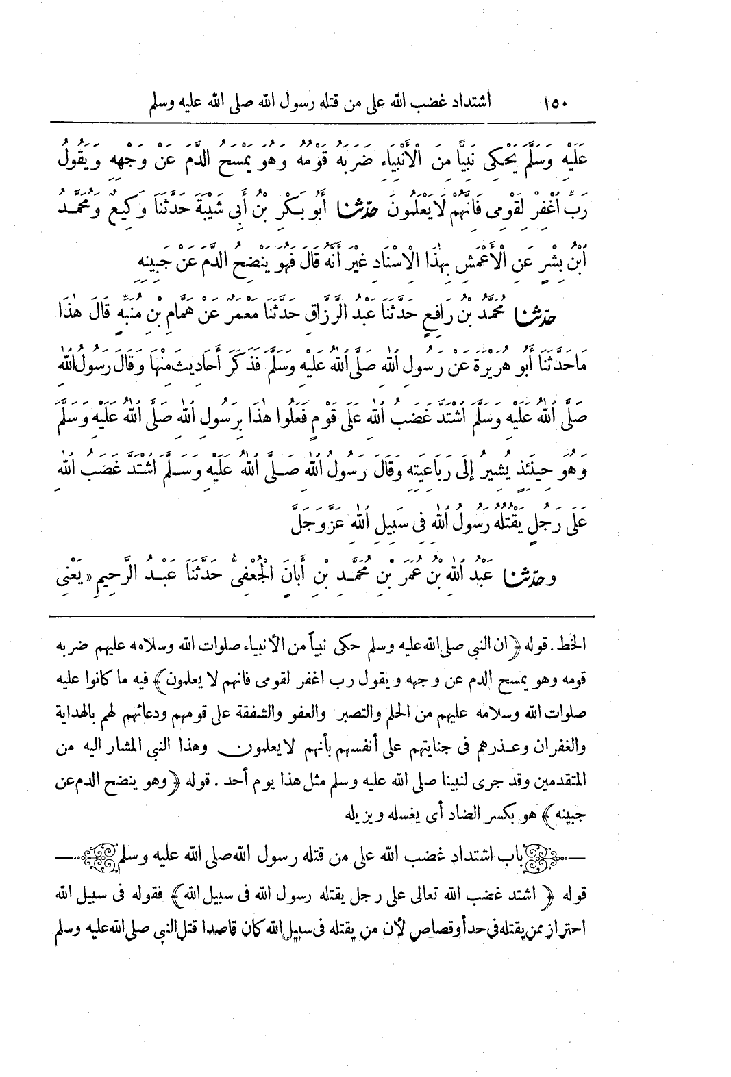 [1793] (اشْتَدَّ غَضَبُ اللَّهِ تَعَالَى عَلَى رَجُلٍ يَقْتُلُهُ رَسُولُ اللَّهِ فِي سَبِيلِ اللَّهِ) فَقَوْلُهُ فِي سَبِيلِ اللَّهِ احْتِرَازٌ مِمَّنْ يَقْتُلُهُ فِي حَدٍّ أَوْ قِصَاصٍ لِأَنَّ مَنْ يَقْتُلُهُ فِي سَبِيلِ اللَّهِ كَانَ قَاصِدًا قَتْلَ النَّبِيِّ صلى الله عليه وسلم)