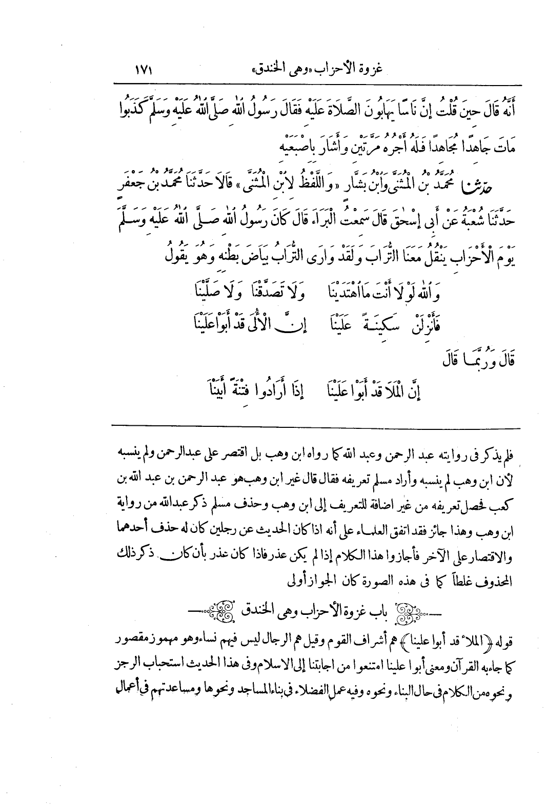 [1803] قَوْلُهُ (الْمَلَأُ قَدْ أَبَوْا عَلَيْنَا) هُمْ أَشْرَافُ الْقَوْمِ وَقِيلَ هُمُ الرِّجَالُ لَيْسَ فِيهِمْ نِسَاءٌ وَهُوَ مَهْمُوزٌ مَقْصُورٌ كَمَا جَاءَ بِهِ الْقُرْآنُ وَمَعْنَى أَبَوْا عَلَيْنَا امْتَنَعُوا مِنْ إِجَابَتِنَا إِلَى الْإِسْلَامِ وَفِي هَذَا الْحَدِيثِ اسْتِحْبَابُ الرَّجَزِ وَنَحْوِهِ مِنَ الْكَلَامِ فِي حَالِ الْبِنَاءِ وَنَحْوِهِ وَفِيهِ عَمَلُ الْفُضَلَاءِ فِي بِنَاءِ الْمَسَاجِدِ وَنَحْوِهَا وَمُسَاعَدَتُهُمْ فِي أعمال)