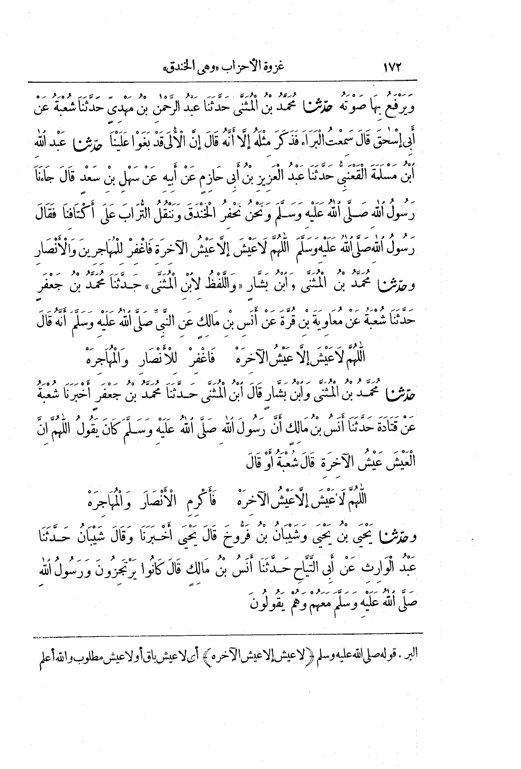 [1804] قَوْلُهُ صَلَّى اللَّهُ عَلَيْهِ وَسَلَّمَ (لَا عَيْشَ إِلَّا عَيْشُ الْآخِرَةِ) أَيْ لَا عَيْشَ بَاقٍ أو لا عيش مطلوب والله أعلم