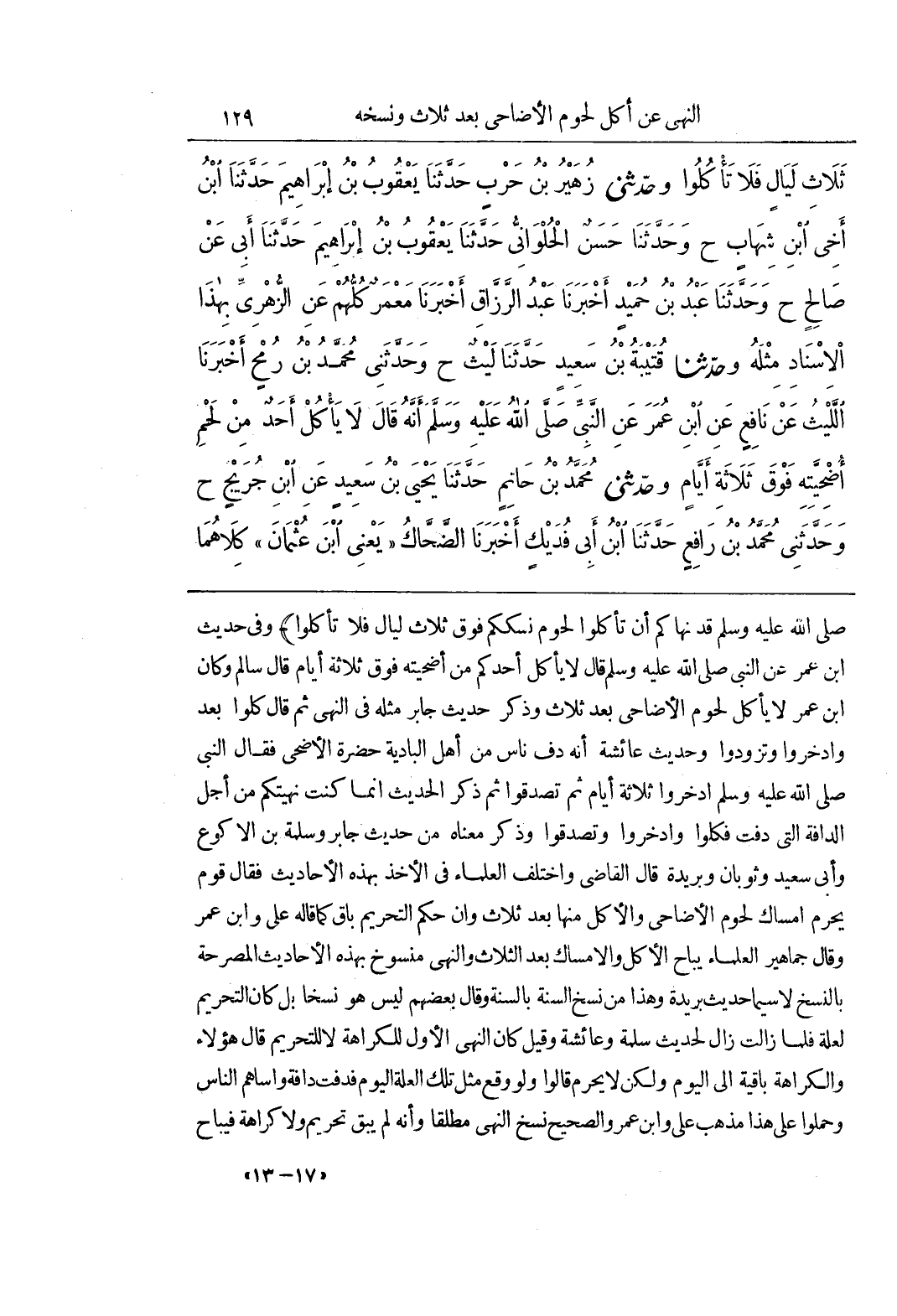 صَلَّى اللَّهُ عَلَيْهِ وَسَلَّمَ قَدْ نَهَاكُمْ أَنْ تأكلوا لحوم نسككم فوق ثلاث ليال فلاتأكلوا)