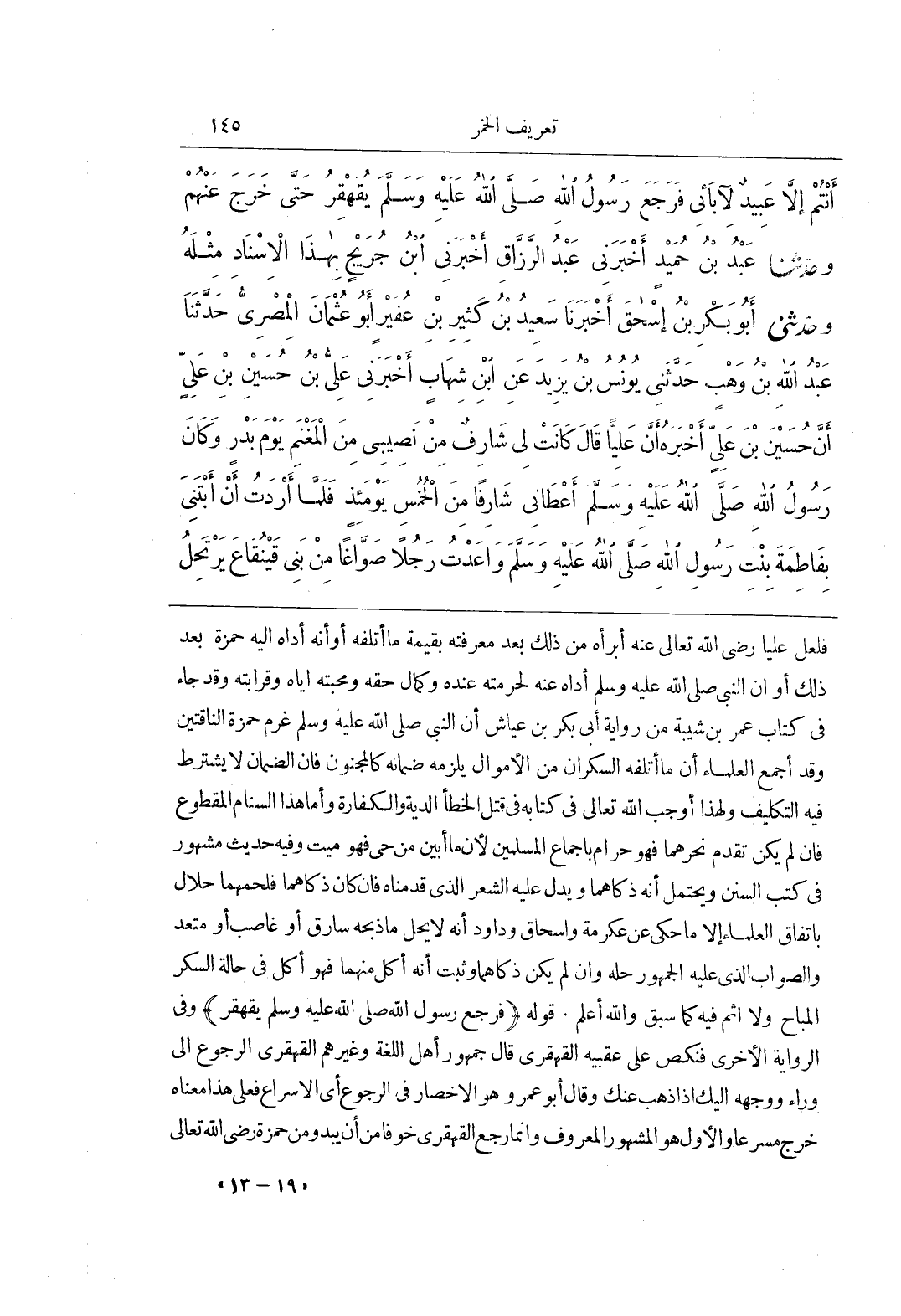 فَلَعَلَّ عَلِيًّا رَضِيَ اللَّهُ تَعَالَى عَنْهُ أَبْرَأَهُ مِنْ ذَلِكَ بَعْدَ مَعْرِفَتِهِ بِقِيمَةِ مَا أَتْلَفَهُ أَوْ أَنَّهُ أَدَّاهُ إِلَيْهِ حَمْزَةُ بَعْدَ ذَلِكَ أَوْ أَنَّ النَّبِيَّ صَلَّى اللَّهُ عَلَيْهِ وَسَلَّمَ أَدَّاهُ عَنْهُ لِحُرْمَتِهِ عِنْدَهُ وَكَمَالِ حَقِّهِ وَمَحَبَّتِهِ إِيَّاهُ وَقَرَابَتِهِ وَقَدْ جَاءَ فِي كِتَابِ عُمَرَ بْنِ شَيْبَةِ مِنْ رِوَايَةِ أَبِي بَكْرِ بْنِ عَيَّاشٍ أَنَّ النَّبِيَّ صَلَّى اللَّهُ عَلَيْهِ وَسَلَّمَ غَرَّمَ حَمْزَةَ النَّاقَتَيْنِ وَقَدْ أَجْمَعَ الْعُلَمَاءُ أَنَّ مَا أَتْلَفَهُ السَّكْرَانُ مِنَ الْأَمْوَالِ يَلْزَمُهُ ضَمَانُهُ كالمجنون فان الضمان لايشترط فيه التكليف ولهذا أوجب اللهتعالى فِي كِتَابِهِ فِي قَتْلِ الْخَطَأِ الدِّيَةَ وَالْكَفَّارَةَ وَأَمَّا هَذَا السَّنَامُ الْمَقْطُوعُ فَإِنْ لَمْ يَكُنْ تَقَدَّمَ نَحْرُهُمَا فَهُوَ حَرَامٌ بِإِجْمَاعِ الْمُسْلِمِينَ لِأَنَّ ما أبين منحى فَهُوَ مَيْتٌ وَفِيهِ حَدِيثٌ مَشْهُورٌ فِي كُتُبِ السُّنَنِ وَيَحْتَمِلُ أَنَّهُ ذَكَّاهُمَا وَيَدُلُّ عَلَيْهِ الشِّعْرُ الَّذِي قَدَّمْنَاهُ فَإِنْ كَانَ ذَكَّاهُمَا فَلَحْمُهُمَا حَلَالٌ باتفاق العلماء إلاما حكى عن عكرمة واسحاق وداود أنه لايحل ماذبحه سَارِقٌ أَوْ غَاصِبٌ أَوْ مُتَعَدٍّ وَالصَّوَابُ الَّذِي عَلَيْهِ الْجُمْهُورُ حِلُّهُ وَإِنْ لَمْ يَكُنْ ذَكَّاهُمَا وَثَبَتَ أَنَّهُ أَكَلَ مِنْهُمَا فَهُوَ أَكْلٌ فِي حالة السكر المباح ولااثم فِيهِ كَمَا سَبَقَ وَاللَّهُ أَعْلَمُ قَوْلُهُ (فَرَجَعَ رَسُولُ اللَّهِ صَلَّى اللَّهُ عَلَيْهِ وَسَلَّمَ يُقَهْقِرُ) وَفِي الرِّوَايَةِ الْأُخْرَى فَنَكَصَ عَلَى عَقِبَيْهِ الْقَهْقَرَى قَالَ جُمْهُورُ أَهْلِ اللُّغَةِ وَغَيْرُهُمْ الْقَهْقَرَى الرُّجُوعُ إلى وراءووجهه اليك اذا ذهب عنك وقال أبو عمر وهو الاخصار فِي الرُّجُوعِ أَيِ الْإِسْرَاعُ فَعَلَى هَذَا مَعْنَاهُ خرج مسرعا والأول هو المشهور المعروف وَإِنَّمَا رَجَعَ الْقَهْقَرَى خَوْفًا مِنْ أَنْ يَبْدُوَ مِنْ حَمْزَةَ رَضِيَ اللَّهُ تَعَالَى