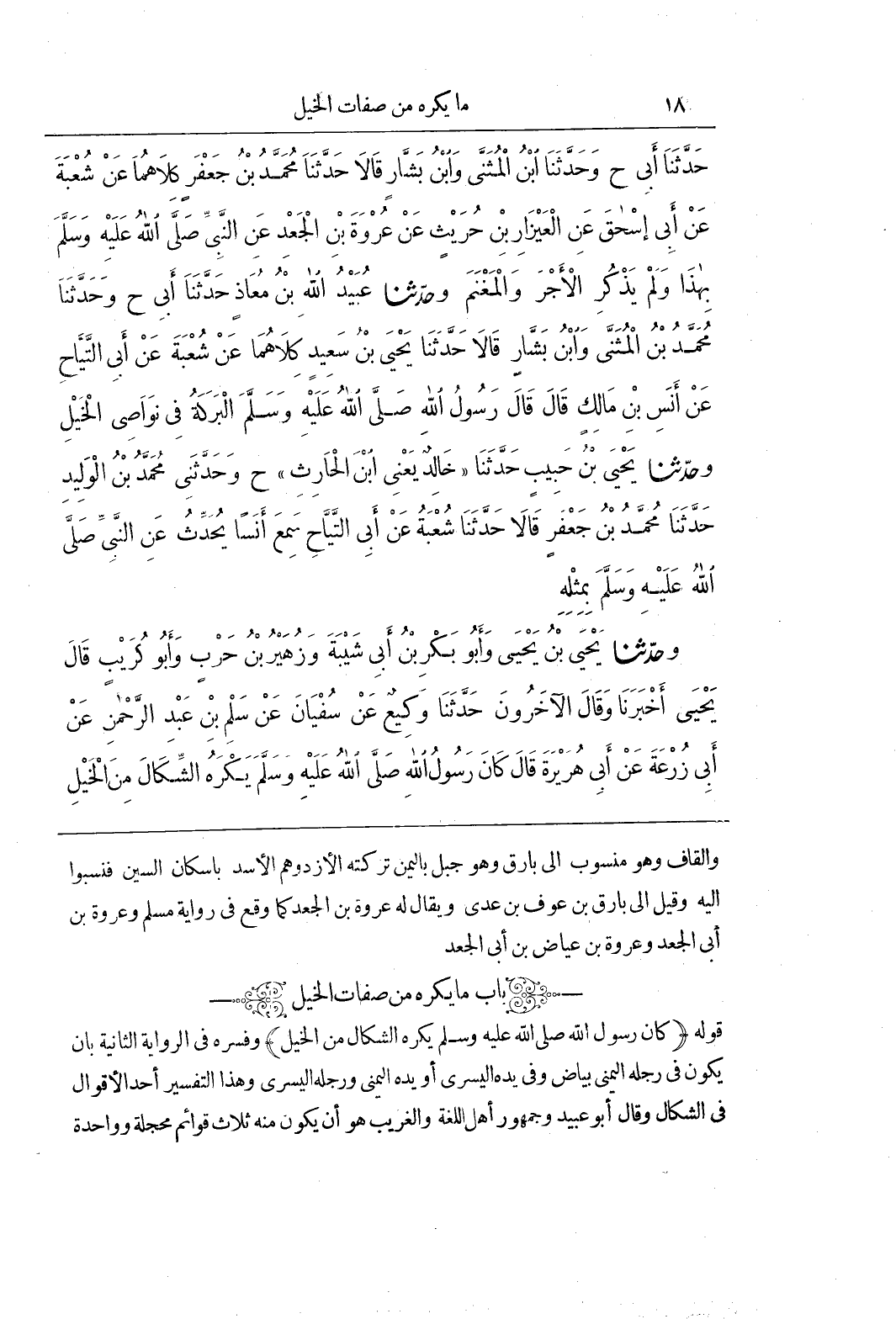 [1875] قَوْلُهُ (كَانَ رَسُولُ اللَّهِ صَلَّى اللَّهُ عَلَيْهِ وَسَلَّمَ يَكْرَهُ الشِّكَالَ مِنَ الْخَيْلِ) وَفَسَّرَهُ فِي الرِّوَايَةِ الثَّانِيَةِ بِأَنْ يَكُونَ فِي رِجْلِهِ الْيُمْنَى بَيَاضٌ وَفِي يَدِهِ الْيُسْرَى أَوْ يَدِهِ الْيُمْنَى وَرِجْلِهِ الْيُسْرَى وَهَذَا التَّفْسِيرُ أَحَدُ الْأَقْوَالِ فِي الشِّكَالِ وَقَالَ أَبُو عُبَيْدٍ وَجُمْهُورُ أَهْلِ اللُّغَةِ وَالْغَرِيبِ هُوَ أَنْ يَكُونَ مِنْهُ ثَلَاثُ قَوَائِمَ محجلة وواحدة