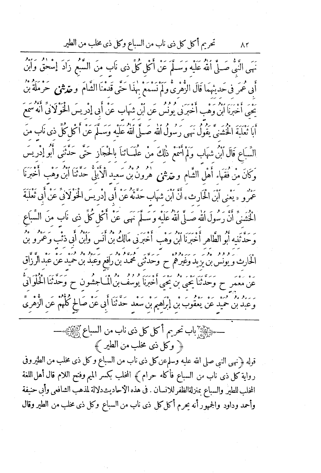 (باب تحريم أَكْلُ كُلِّ ذِي نَابٍ مِنَ السِّبَاعِ وَكُلِّ ذى مخلب من الطير)