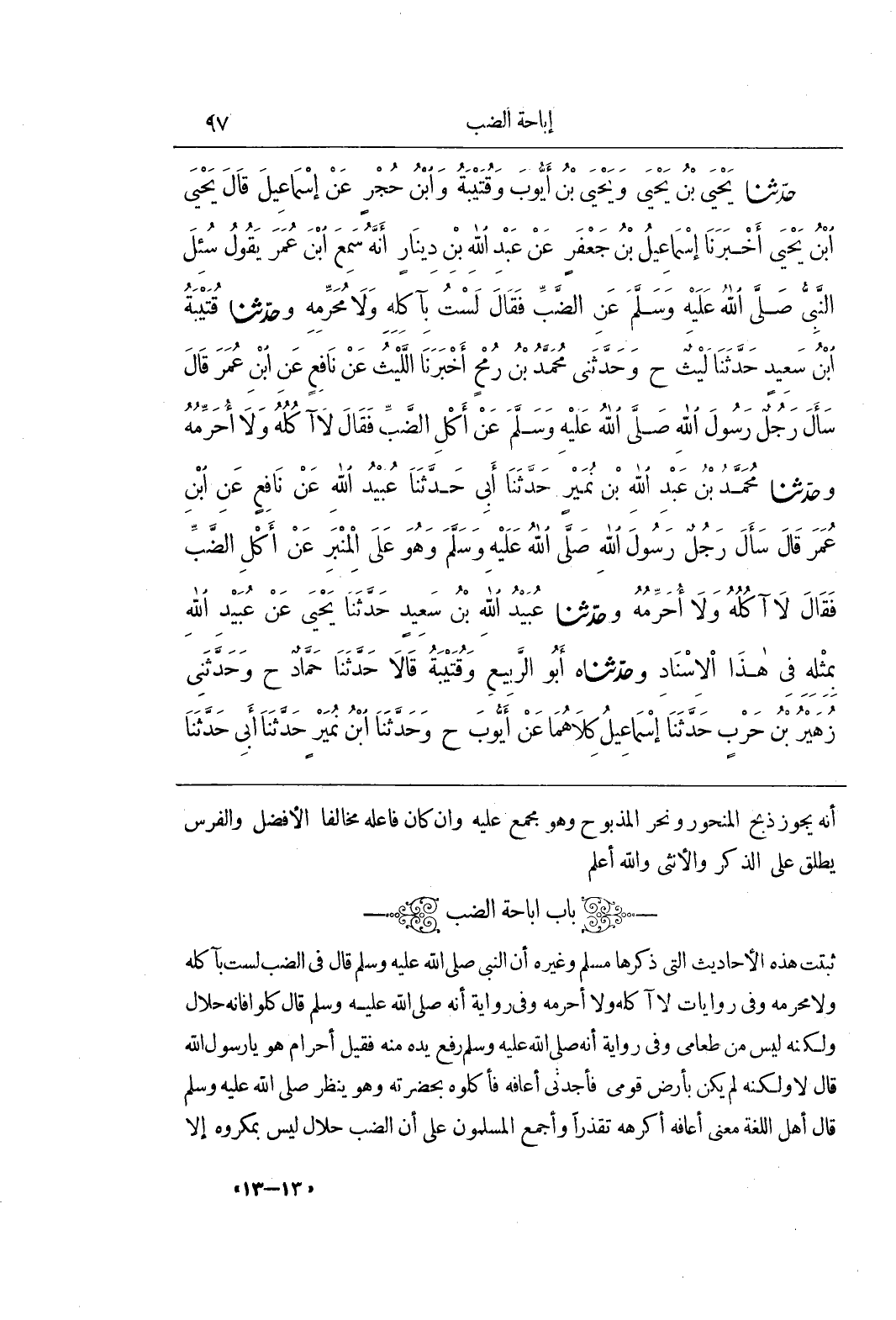(بَابُ إِبَاحَةِ الضَّبِّ ثَبَتَتْ هَذِهِ الْأَحَادِيثُ الَّتِي ذَكَرَهَا مُسْلِمٍ وَغَيْرِهِ