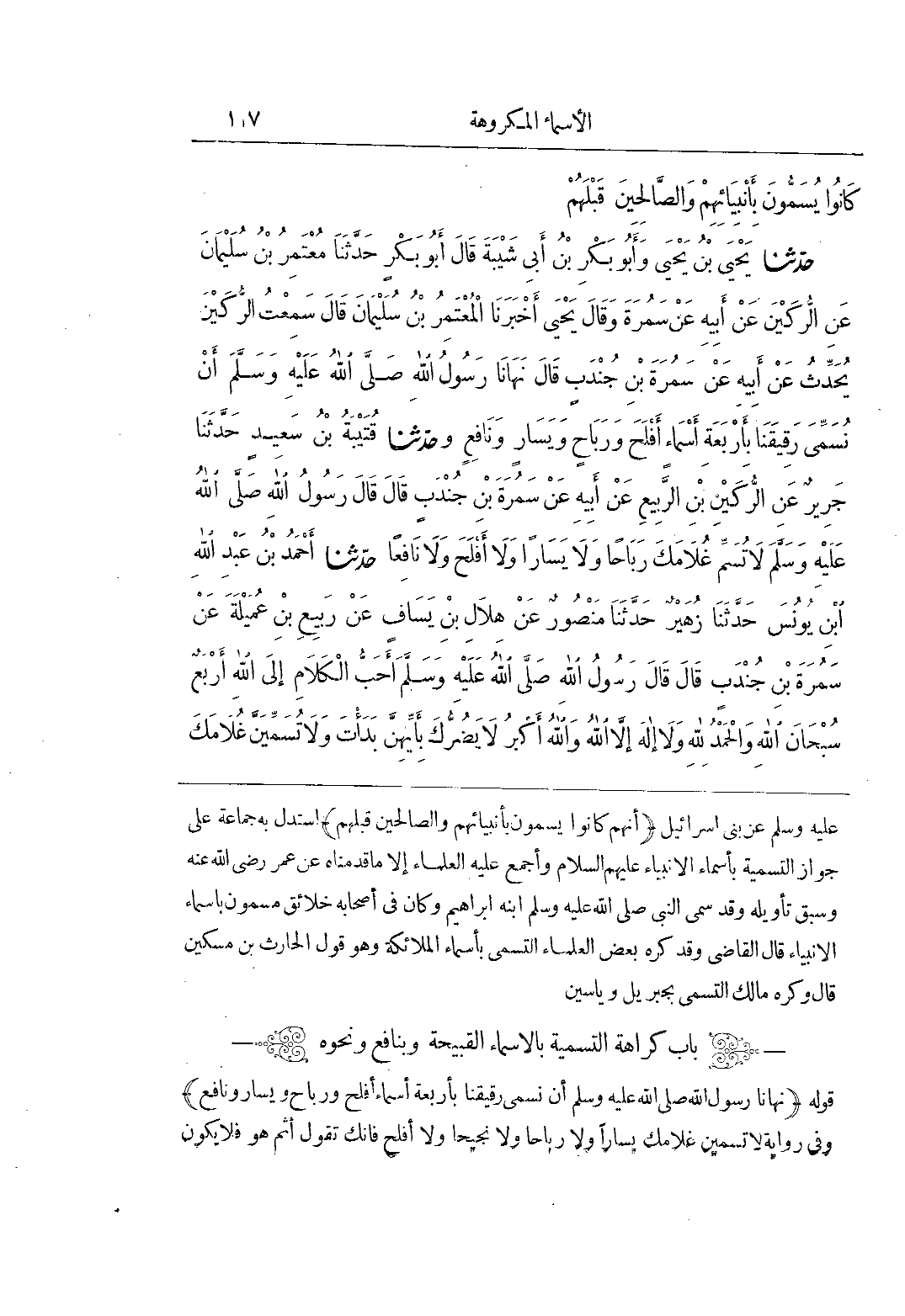 (بَاب كَرَاهَةِ التَّسْمِيَةِ بِالْأَسْمَاءِ الْقَبِيحَةِ وَبِنَافِعٍ وَنَحْوِهِ)