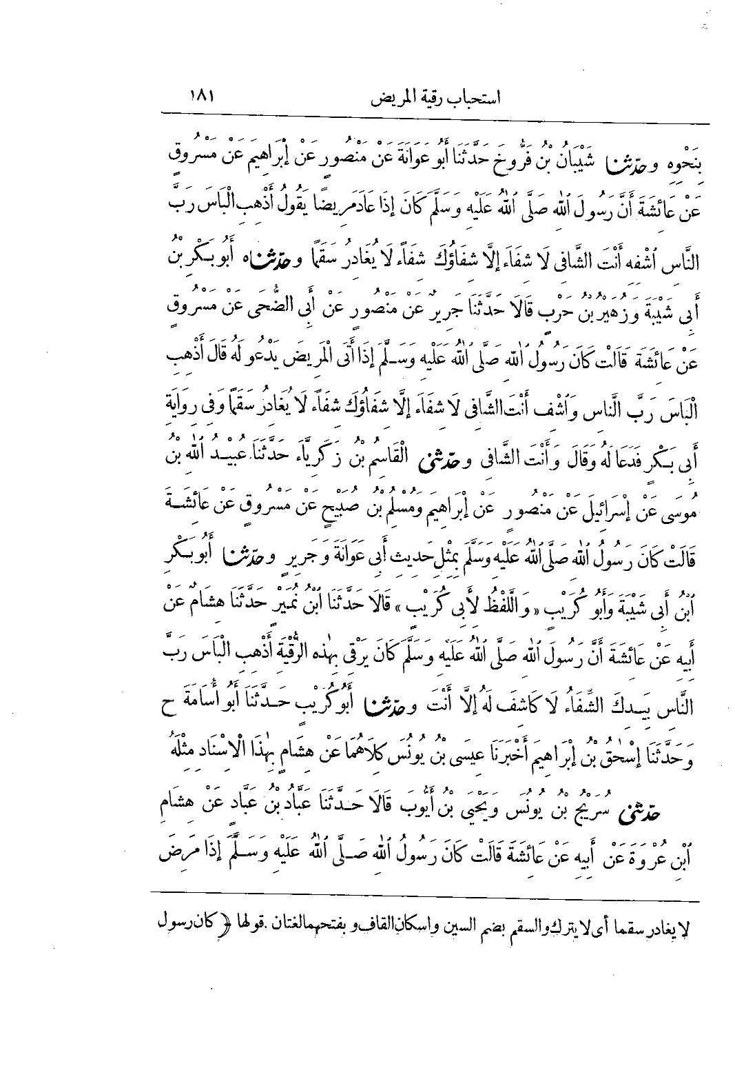 لايغادر سقما أى لايترك وَالسَّقَمُ بِضَمِّ السِّينِ وَإِسْكَانِ الْقَافِ وَبِفَتْحِهِمَا لُغَتَانِ قَوْلُهَا (كَانَ رَسُولُ