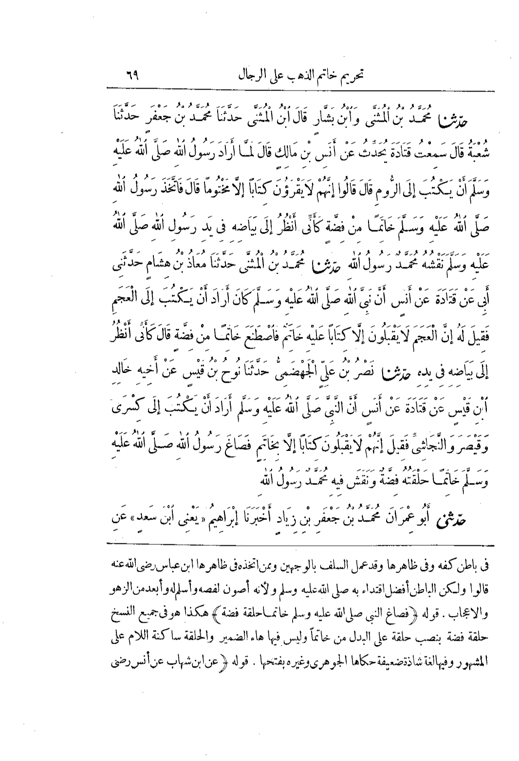 فِي بَاطِنِ كَفِّهِ وَفِي ظَاهِرِهَا وَقَدْ عَمِلَ السلف بالوجهين وممن اتخذه فى ظاهرها بن عَبَّاسٍ رَضِيَ اللَّهُ عَنْهُ قَالُوا وَلَكِنَّ الْبَاطِنَ أَفْضَلُ اقْتِدَاءً بِهِ صَلَّى اللَّهُ عَلَيْهِ وَسَلَّمَ وَلِأَنَّهُ أَصْوَنُ لِفَصِّهِ وَأَسْلَمُ لَهُ وَأَبْعَدُ مِنَ الزَّهْوِ وَالْإِعْجَابِ قَوْلُهُ ((فَصَاغَ النَّبِيُّ صَلَّى اللَّهُ عليه وسلم خاتما حلقة فِضَّةً) هَكَذَا هُوَ فِي جَمِيعِ النُّسَخِ حَلْقَةَ فِضَّةٍ بِنَصْبِ حَلْقَةَ عَلَى الْبَدَلِ مِنْ خَاتَمًا وَلَيْسَ فِيهَا هَاءُ الضَّمِيرِ وَالْحَلْقَةُ سَاكِنَةُ اللَّامِ عَلَى الْمَشْهُورِ وَفِيهَا لُغَةٌ شَاذَّةٌ ضَعِيفَةٌ حَكَاهَا الجوهرى وغيره بفتحها