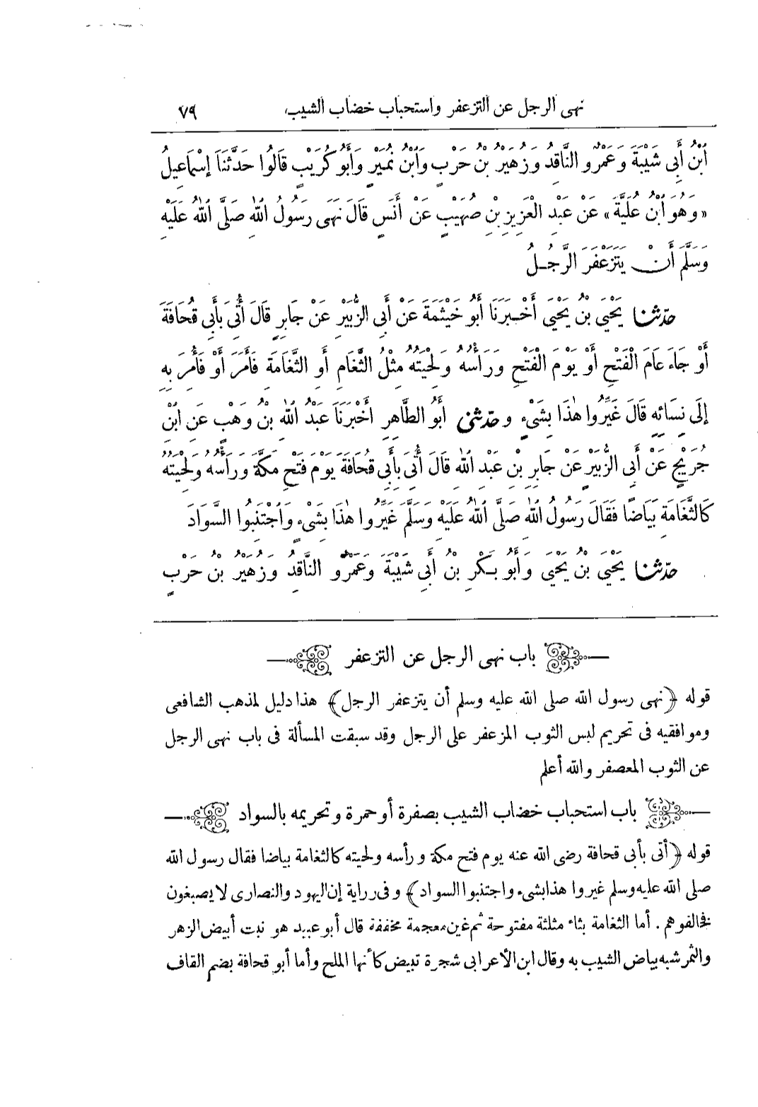[2101] قَوْلُهُ (نَهَى رَسُولُ اللَّهِ صَلَّى اللَّهُ عَلَيْهِ وَسَلَّمَ أن يَتَزَعْفَرَ الرَّجُلُ) هَذَا دَلِيلٌ لِمَذْهَبِ الشَّافِعِيِّ وَمُوَافِقِيهِ فِي تَحْرِيمِ لُبْسِ الثَّوْبِ الْمُزَعْفَرِ عَلَى الرَّجُلِ وَقَدْ سَبَقَتِ الْمَسْأَلَةُ فِي بَابِ نَهْيِ الرَّجُلِ عَنِ الثَّوْبِ الْمُعَصْفَرِ وَاللَّهُ أَعْلَمُ