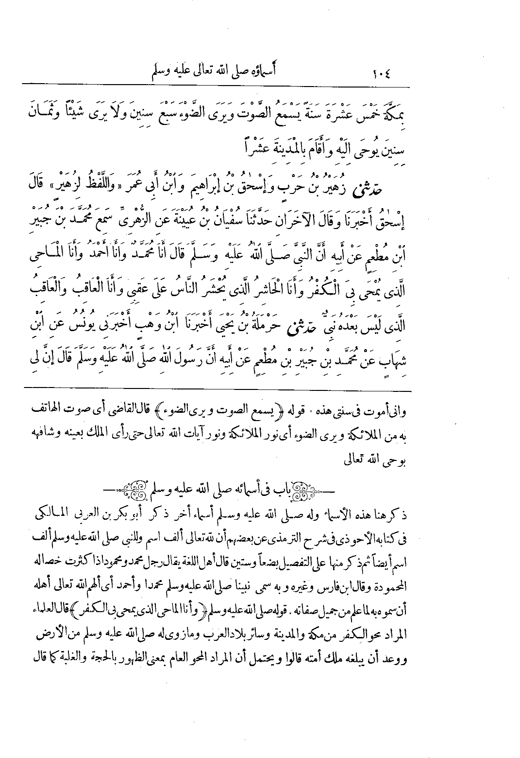 ذَكَرَ هُنَا هَذِهِ الْأَسْمَاءَ وَلَهُ صَلَّى اللَّهُ عَلَيْهِ وَسَلَّمَ أَسْمَاءُ أُخَرُ ذَكَرَ أَبُو بَكْرِ بْنُ الْعَرَبِيِّ الْمَالِكِيُّ فِي كِتَابِهِ الْأَحْوَذِيِّ فِي شَرْحِ التِّرْمِذِيِّ عَنْ بَعْضِهِمْ أَنَّ لِلَّهِ تَعَالَى أَلْفَ اسْمٍ وَلِلنَّبِيِّ صَلَّى اللَّهُ عَلَيْهِ وَسَلَّمَ أَلْفَ اسْمٍ أَيْضًا ثُمَّ ذَكَرَ مِنْهَا عَلَى التَّفْصِيلِ بِضْعًا وَسِتِّينَ قَالَ أَهْلُ اللُّغَةِ يُقَالُ رَجُلٌ مُحَمَّدٌ وَمَحْمُودٌ إِذَا كَثُرَتْ خِصَالُهُ الْمَحْمُودَةُ وقال بن فَارِسٍ وَغَيْرُهُ وَبِهِ سُمِّيَ نَبِيُّنَا صَلَّى اللَّهُ عَلَيْهِ وَسَلَّمَ مُحَمَّدًا وَأَحْمَدَ أَيْ أَلْهَمَ اللَّهُ تَعَالَى أَهْلَهُ أَنْ سَمَّوْهُ بِهِ لِمَا عُلِمَ مِنْ جَمِيلِ صِفَاتِهِ قَوْلُهُ صَلَّى اللَّهُ عَلَيْهِ وَسَلَّمَ