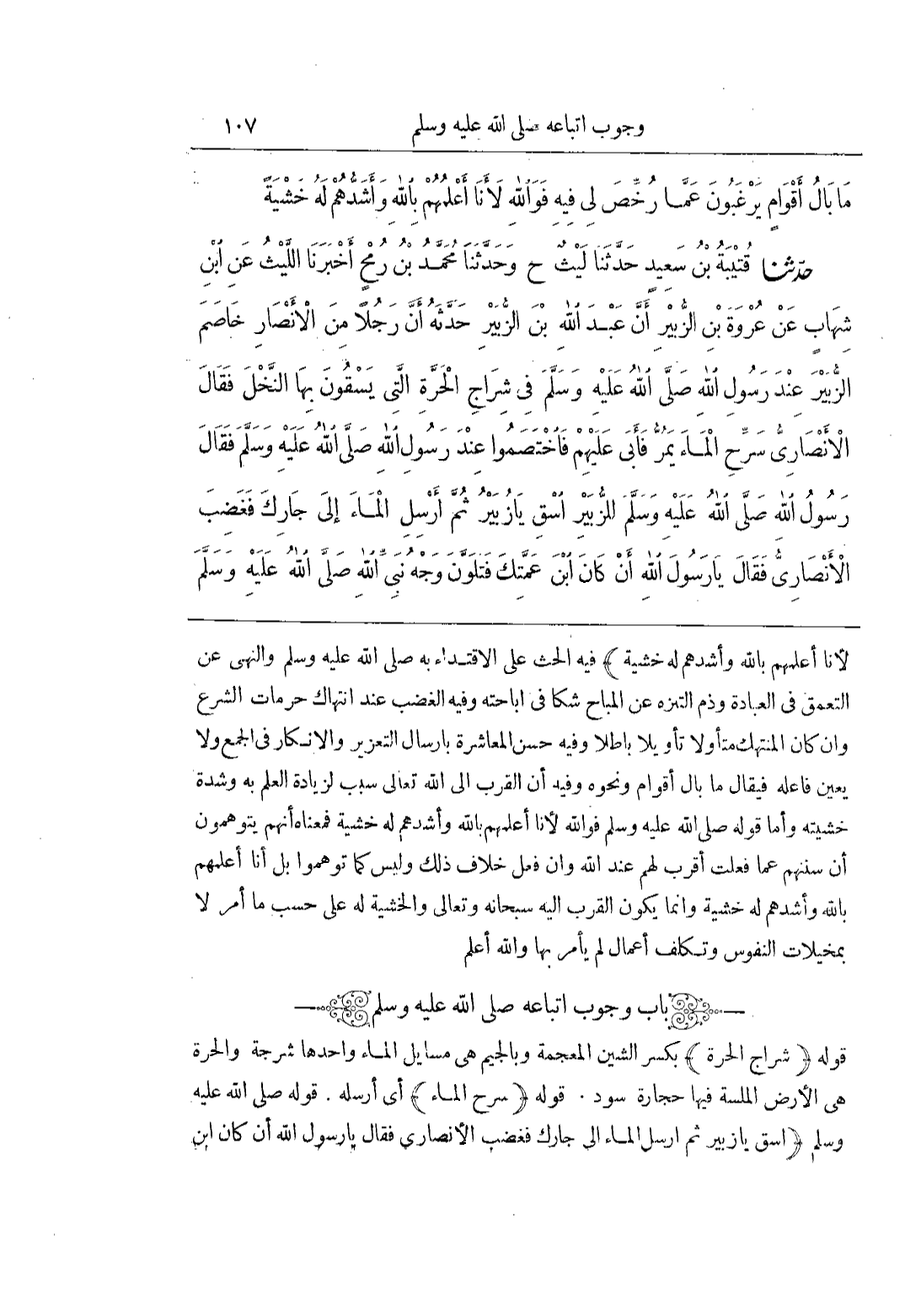 [2357] (شِرَاجُ الْحَرَّةِ) بِكَسْرِ الشِّينِ الْمُعْجَمَةِ وَبِالْجِيمِ هِيَ مَسَايِلُ الْمَاءِ وَاحِدُهَا شَرْجَةٌ وَالْحَرَّةُ هِيَ الْأَرْضُ الْمَلْسَةُ فِيهَا حِجَارَةٌ سُودٌ قَوْلُهُ (سَرِّحِ الْمَاءَ) أَيْ أَرْسِلْهُ قَوْلُهُ صَلَّى اللَّهُ عَلَيْهِ وَسَلَّمَ (اسْقِ يَا زُبَيْرُ ثُمَّ أَرْسِلِ الْمَاءَ إِلَى جَارِكِ فَغَضِبَ الْأَنْصَارِيُّ فَقَالَ يَا رسول الله ان كان بن)