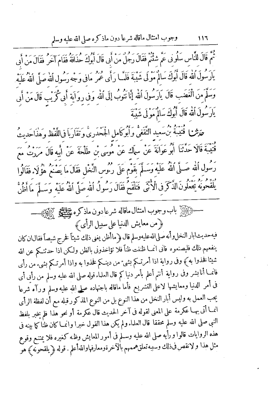 (بَابُ وُجُوبِ امْتِثَالِ مَا قَالَهُ شَرْعًا دُونَ مَا ذَكَرَهُ صَلَّى اللَّهُ عَلَيْهِ وَسَلَّمَ)