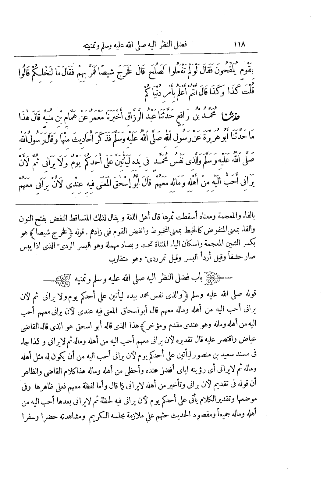(بَاب فَضْلِ النَّظَرِ إِلَيْهِ صَلَّى اللَّهُ عَلَيْهِ وَسَلَّمَ وَتَمَنِّيهِ)