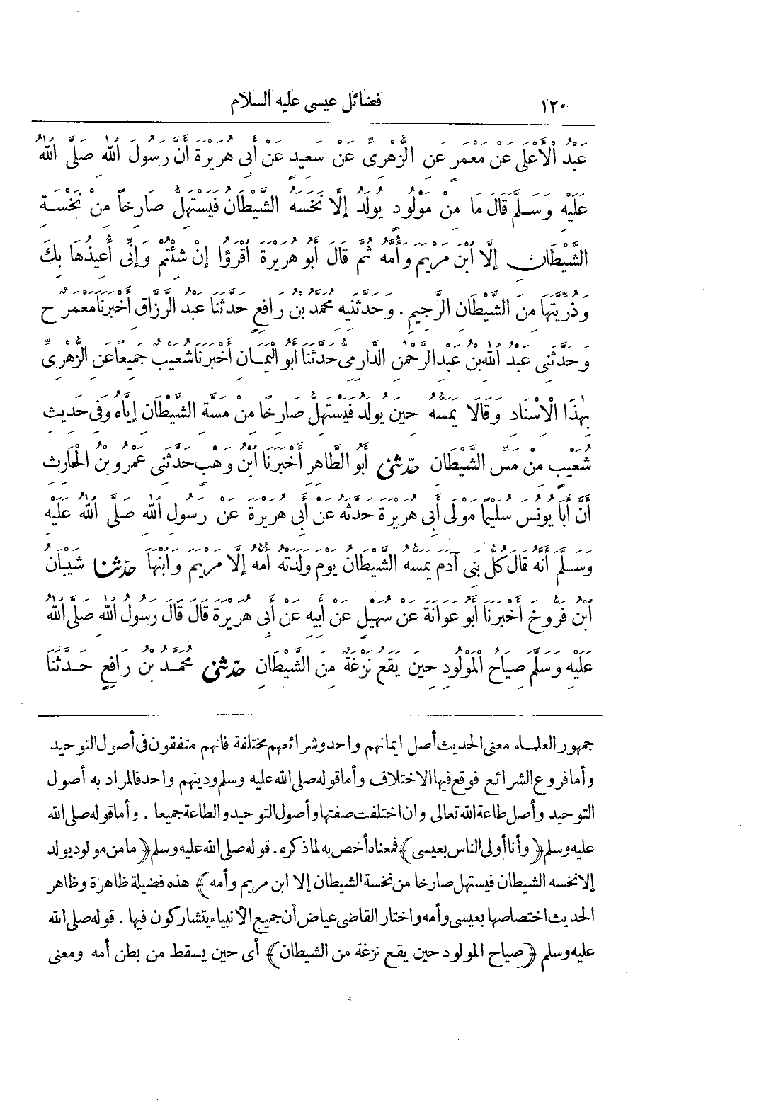 [2366] مَا مِنْ مَوْلُودٍ يُولَدُ إِلَّا نَخَسَهُ الشَّيْطَانُ فَيَسْتَهِلُّ صارخا من نخسة الشيطان الا بن مَرْيَمَ وَأُمَّهُ) هَذِهِ فَضِيلَةٌ ظَاهِرَةٌ وَظَاهِرُ الْحَدِيثِ اخْتِصَاصُهَا بِعِيسَى وَأُمِّهِ وَاخْتَارَ الْقَاضِي عِيَاضٌ أَنَّ جميع الانبياء يتشاركون فِيهَا قَوْلُهُ صَلَّى اللَّهُ عَلَيْهِ وَسَلَّمَ