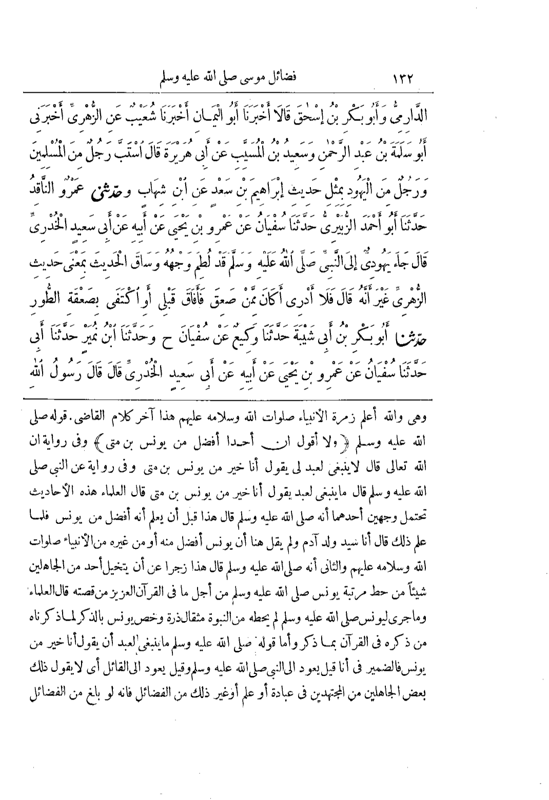 [2377] رِوَايَةٌ عَنِ النَّبِيِّ صَلَّى اللَّهُ عَلَيْهِ وَسَلَّمَ قَالَ مَا يَنْبَغِي لِعَبْدٍ يَقُولَ أَنَا خَيْرٌ مِنْ يُونُسَ بْنِ مَتَّى قَالَ الْعُلَمَاءُ هَذِهِ الْأَحَادِيثُ تَحْتَمِلُ وَجْهَيْنِ أَحَدُهُمَا أَنَّهُ صَلَّى اللَّهُ عَلَيْهِ وَسَلَّمَ قَالَ هَذَا قَبْلَ أَنْ يَعْلَمَ أَنَّهُ أَفْضَلُ مِنْ يُونُسَ فَلَمَّا عَلِمَ ذَلِكَ قَالَ أَنَا سَيِّدُ وَلَدِ آدَمَ وَلَمْ يَقُلْ هُنَا إِنَّ يُونُسَ أَفْضَلُ مِنْهُ أَوْ مِنْ غَيْرِهِ مِنَ الْأَنْبِيَاءِ صَلَوَاتُ اللَّهِ وَسَلَامُهُ عَلَيْهِمْ وَالثَّانِي أَنَّهُ صَلَّى اللَّهُ عَلَيْهِ وَسَلَّمَ قَالَ هَذَا زَجْرًا عَنْ أَنْ يَتَخَيَّلَ أَحَدٌ مِنَ الْجَاهِلِينَ شَيْئًا مِنْ حَطِّ مَرْتَبَةِ يُونُسَ صَلَّى اللَّهُ عَلَيْهِ وَسَلَّمَ مِنْ أَجْلِ مَا فِي الْقُرْآنِ الْعَزِيزِ مِنْ قِصَّتِهِ قَالَ الْعُلَمَاءُ وَمَا جَرَى لِيُونُسَ صَلَّى اللَّهُ عَلَيْهِ وَسَلَّمَ لَمْ يَحُطَّهُ مِنَ النُّبُوَّةِ مِثْقَالَ ذَرَّةٍ وَخَصَّ يُونُسَ بِالذِّكْرِ لِمَا ذَكَرْنَاهُ مِنْ ذِكْرِهِ فِي الْقُرْآنِ بِمَا ذكر وَأَمَّا قَوْلُهُ صَلَّى اللَّهُ عَلَيْهِ وَسَلَّمَ مَا يَنْبَغِي لِعَبْدٍ أَنْ يَقُولَ أَنَا خَيْرٌ مِنْ يُونُسَ فَالضَّمِيرُ فِي أَنَا قِيلَ يَعُودُ إِلَى النَّبِيِّ صَلَّى اللَّهُ عَلَيْهِ وَسَلَّمَ وَقِيلَ يَعُودُ إِلَى الْقَائِلِ أَيْ لَا يَقُولُ ذَلِكَ بَعْضُ الْجَاهِلِينَ مِنَ الْمُجْتَهِدِينَ فِي عِبَادَةٍ أَوْ عِلْمٍ أَوْ غَيْرِ ذَلِكَ مِنَ الْفَضَائِلِ فَإِنَّهُ لَوْ بلغ من الفضاء