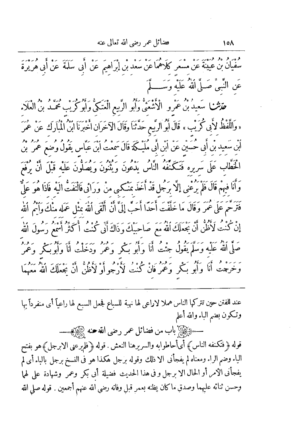 [2389] (فَتَكَنَّفَهُ النَّاسُ) أَيْ أَحَاطُوا بِهِ وَالسَّرِيرُ هُنَا النَّعْشُ قَوْلُهُ (فَلَمْ يَرُعْنِي إِلَّا بِرَجُلٍ) هُوَ بِفَتْحِ الْيَاءِ وَضَمِّ الرَّاءِ وَمَعْنَاهُ لَمْ يَفْجَأْنِي إِلَّا ذَلِكَ وَقَوْلُهُ بِرَجُلٍ هَكَذَا هُوَ فِي النُّسَخِ بِرَجُلٍ بِالْبَاءِ أَيْ لَمْ يَفْجَأْنِي الْأَمْرُ أو الْحَالُ إِلَّا بِرَجُلٍ وَفِي هَذَا الْحَدِيثِ فَضِيلَةُ أَبِي بَكْرٍ وَعُمَرَ وَشَهَادَةُ عَلِيٍّ لَهُمَا وَحُسْنُ ثَنَائِهِ عَلَيْهِمَا وَصِدْقُ مَا كَانَ يَظُنُّهُ بِعُمَرَ قَبْلَ وَفَاتِهِ رَضِيَ اللَّهُ عَنْهُمْ أَجْمَعِينَ قَوْلُهُ صَلَّى اللَّهُ عَلَيْهِ وسلم)