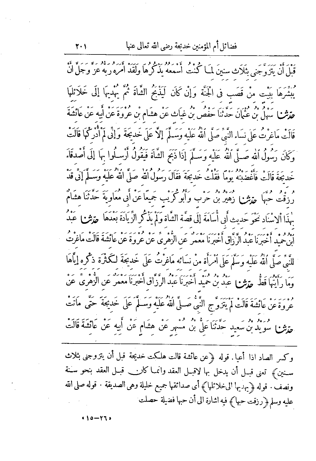[2432] (عَنْ أَبِي هُرَيْرَةَ قَالَ أَتَى جِبْرِيلُ النَّبِيَّ صَلَّى اللَّهُ عَلَيْهِ وَسَلَّمَ فَقَالَ يَا رَسُولَ اللَّهِ هَذِهِ خَدِيجَةُ قَدْ أَتَتْكَ مَعَهَا إِنَاءٌ فِيهِ إِدَامٌ أَوْ طَعَامٌ أَوْ شَرَابٌ فَإِذَا هِيَ أَتَتْكَ فَاقْرَأْ عَلَيْهَا السَّلَامَ مِنْ رَبِّهَا وَمِنِّي وَبَشِّرْهَا بِبَيْتٍ فِي الْجَنَّةِ مِنْ قَصَبٍ لَا صَخَبَ فِيهِ وَلَا نَصَبَ) هَذَا الْحَدِيثُ مِنْ مَرَاسِيلِ الصَّحَابَةِ وَهُوَ حُجَّةٌ عِنْدَ الْجَمَاهِيرِ كَمَا سبق وخالف فيه الأستاذ أبو إسحاق